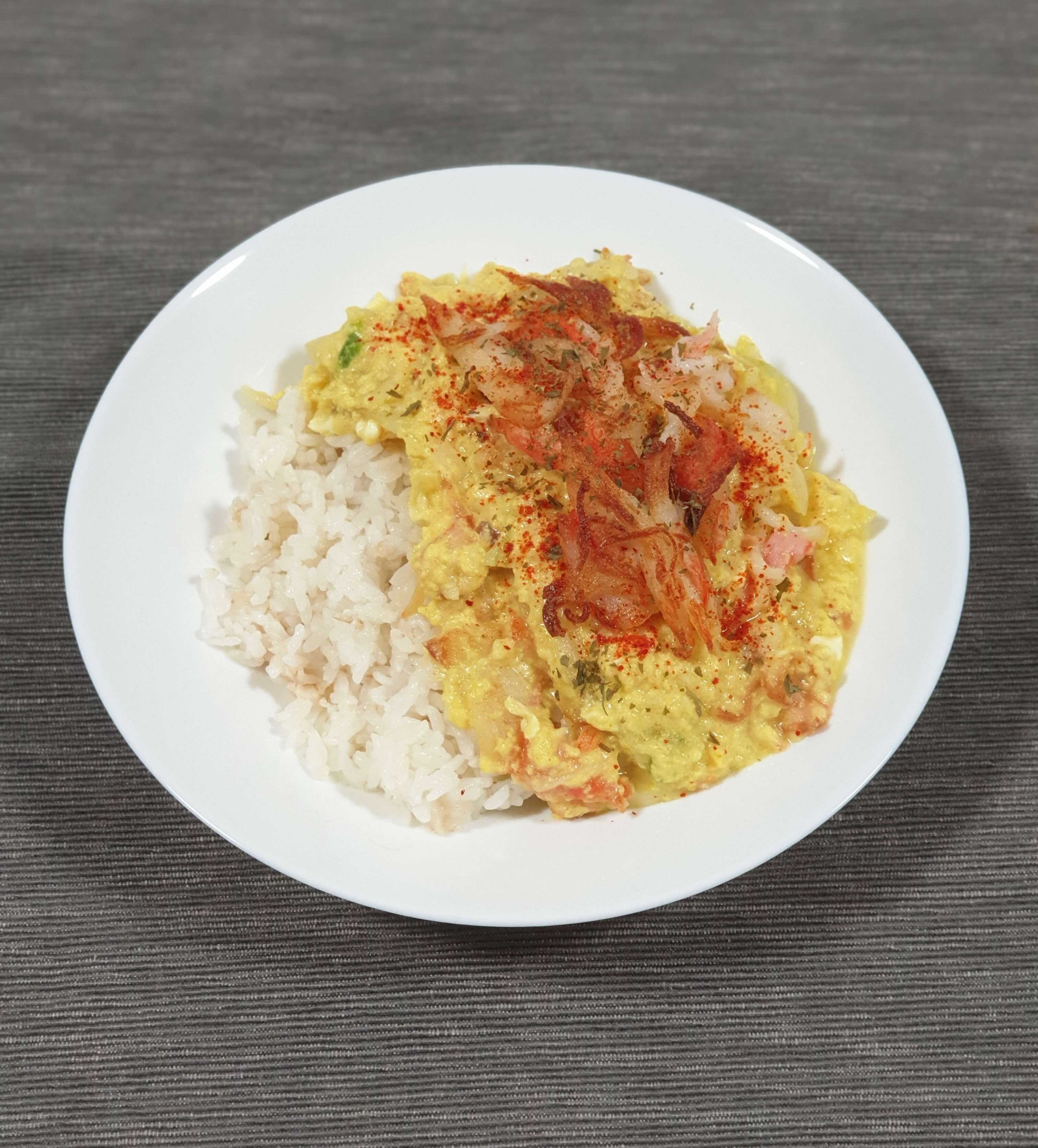 밥 옆에 다 만들어진 푸팟퐁 커리를 부어 주고