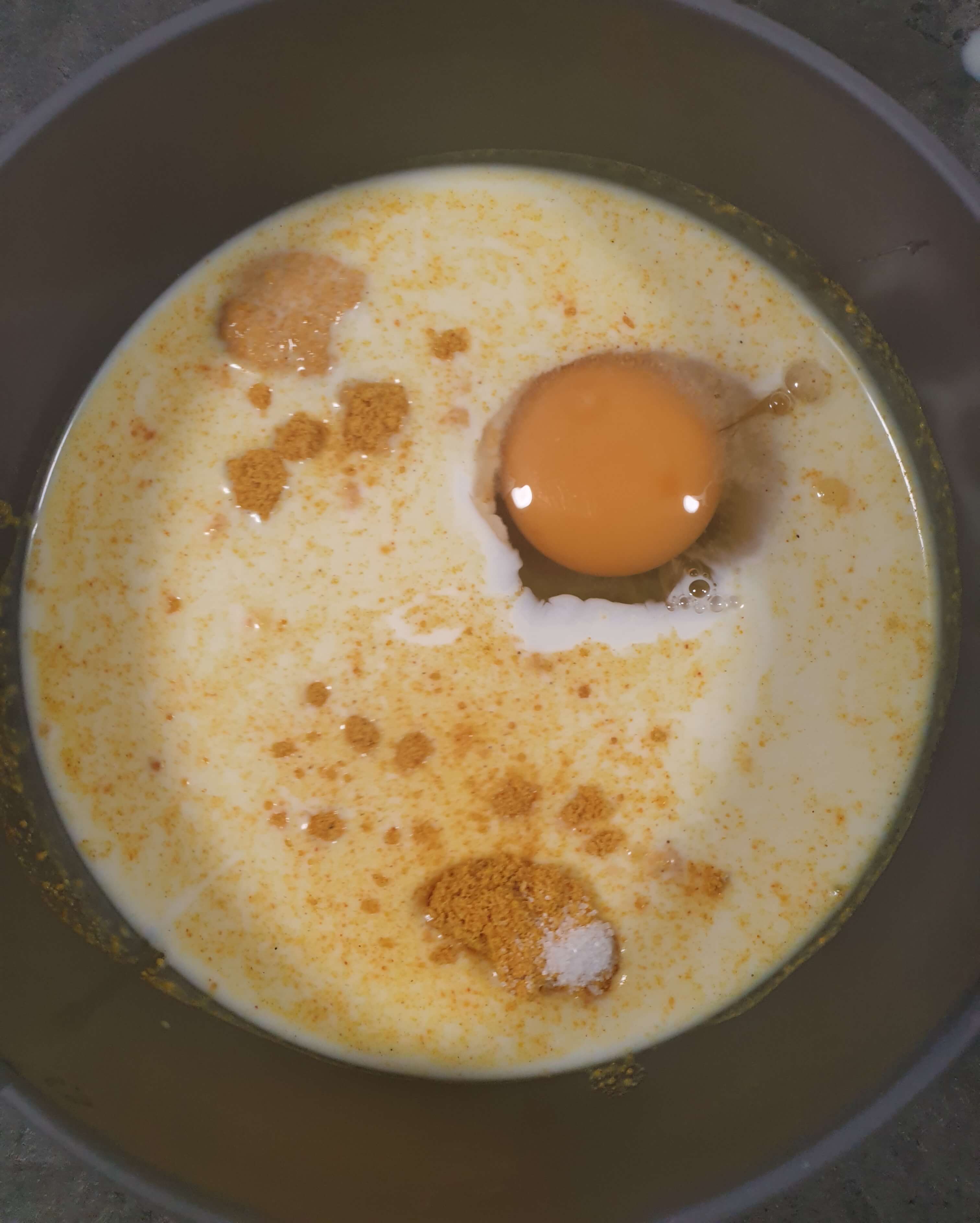 계란 1개를 넣고 잘 섞어 주세요.