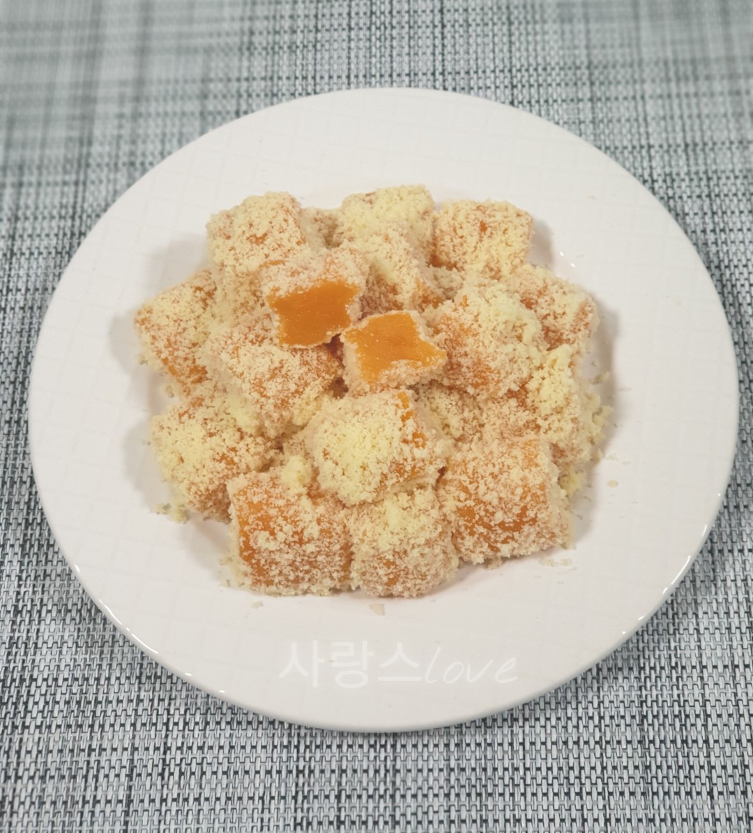 전자레인지로 진짜 카스테라 단호박 인절미가 탄생했어요.