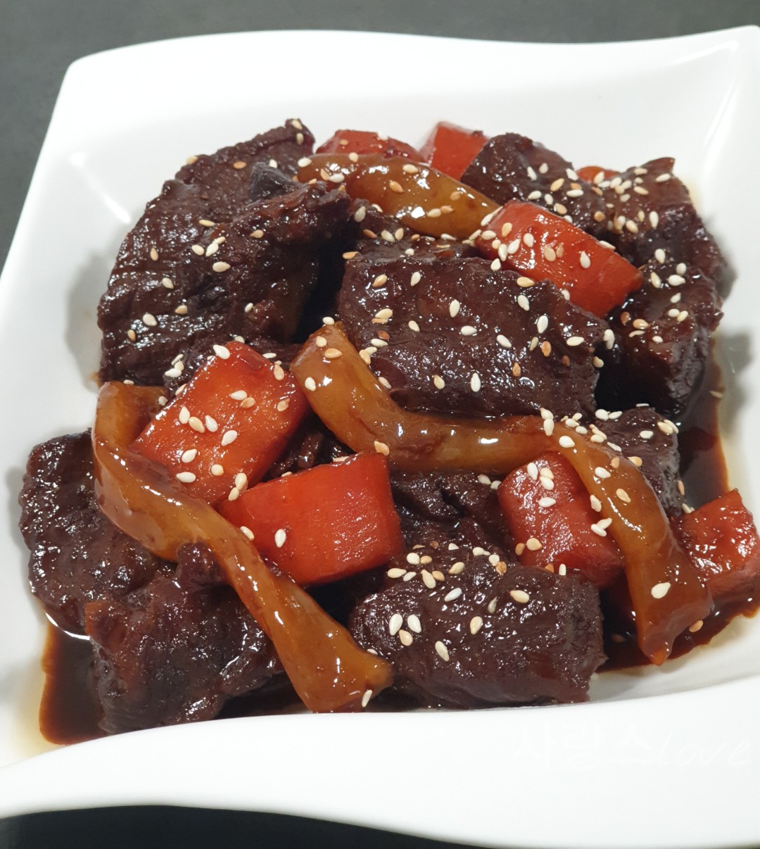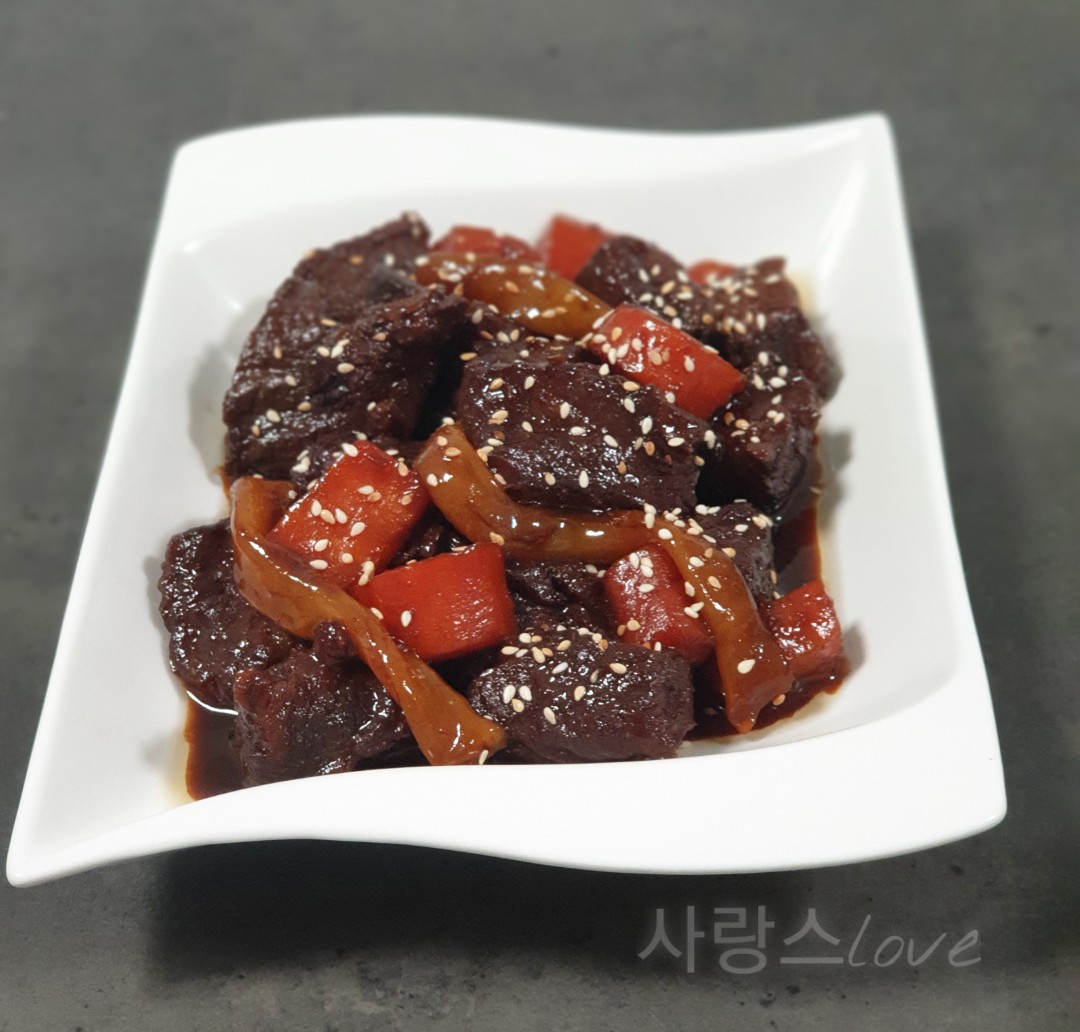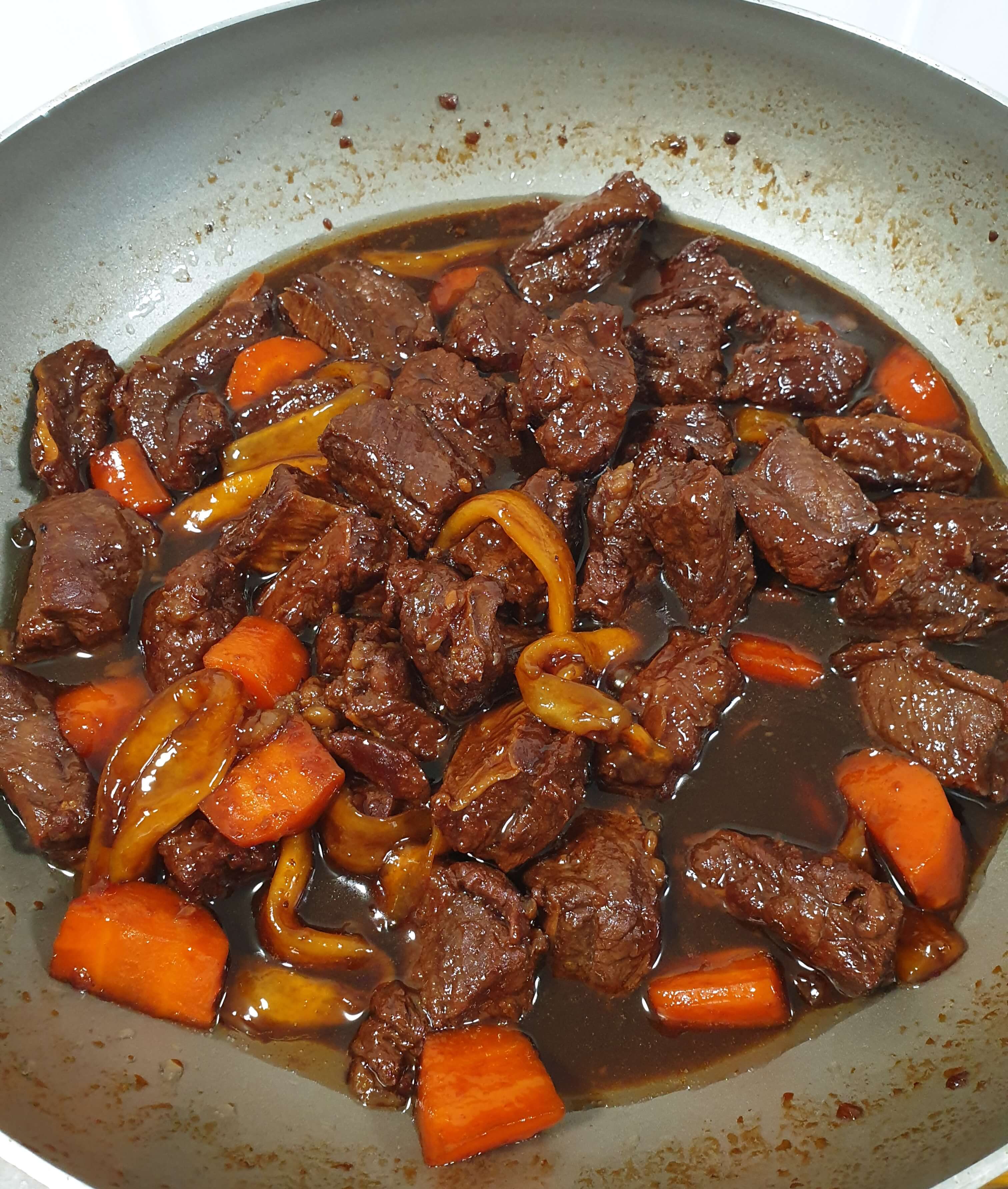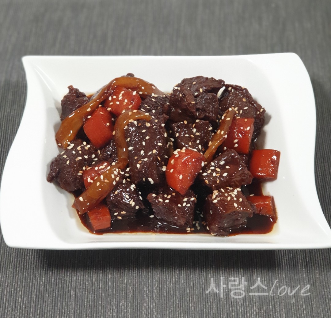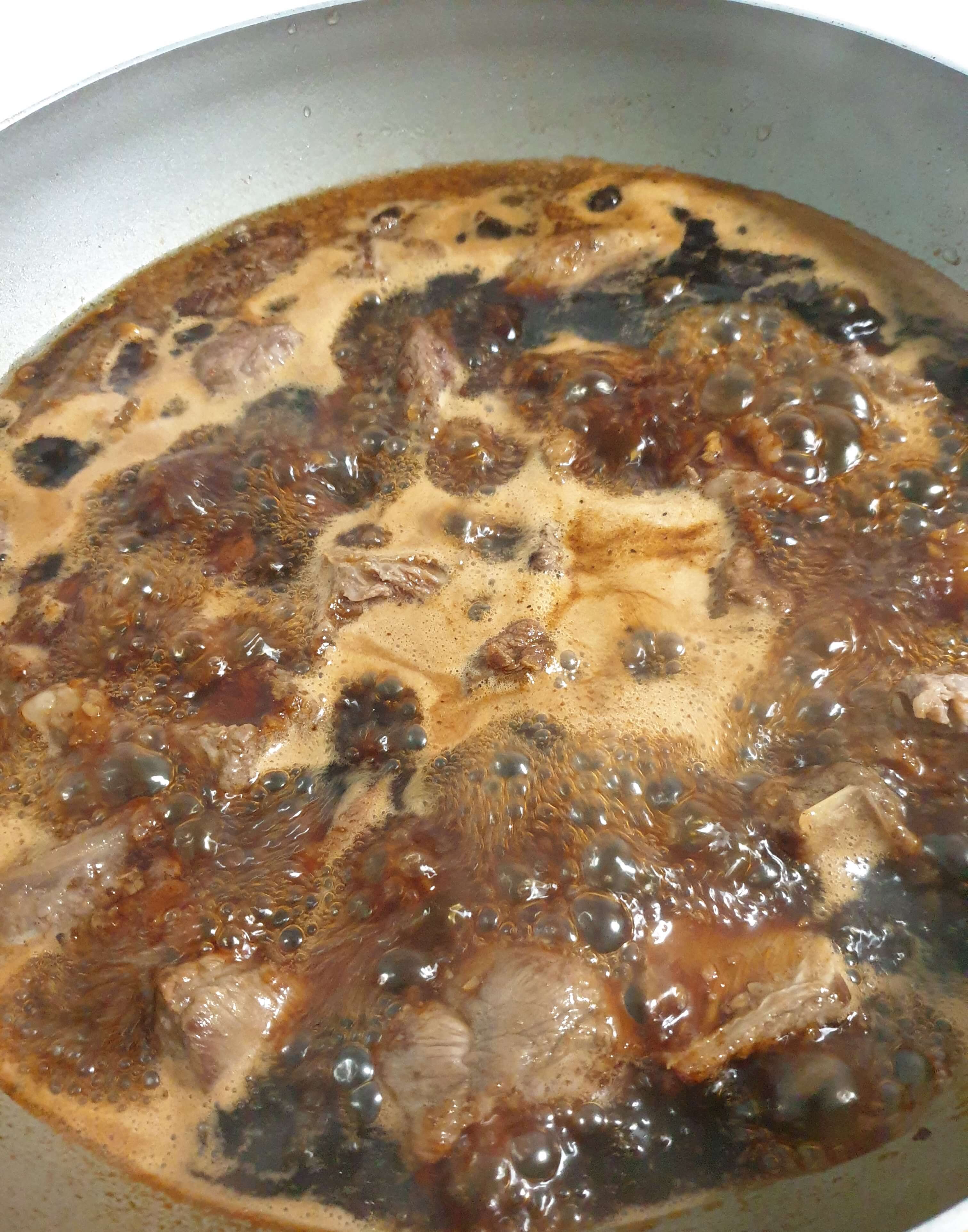 중간중간 저어주면서 양념과 고기가 눌어붙지 않게 해 주세요.