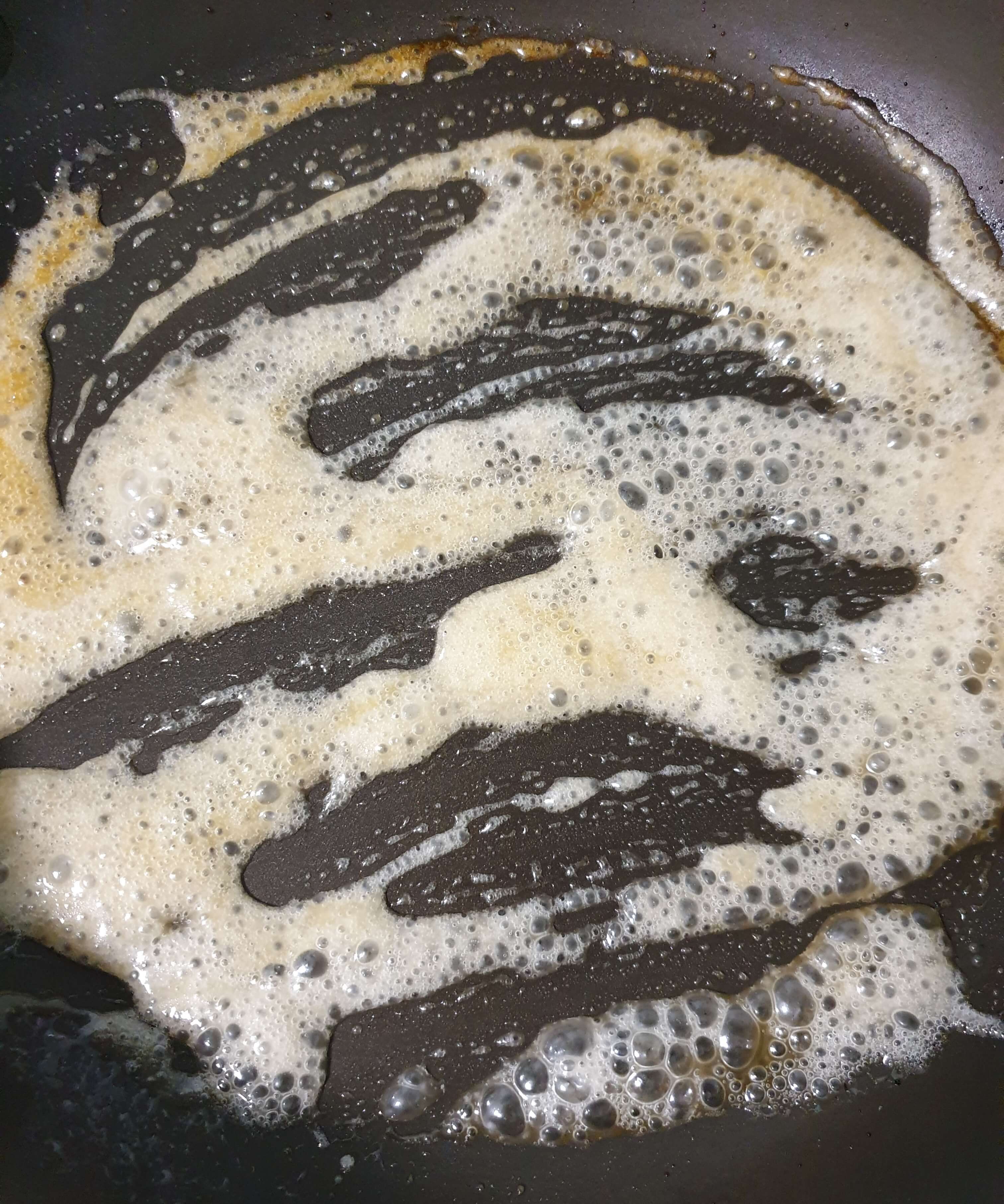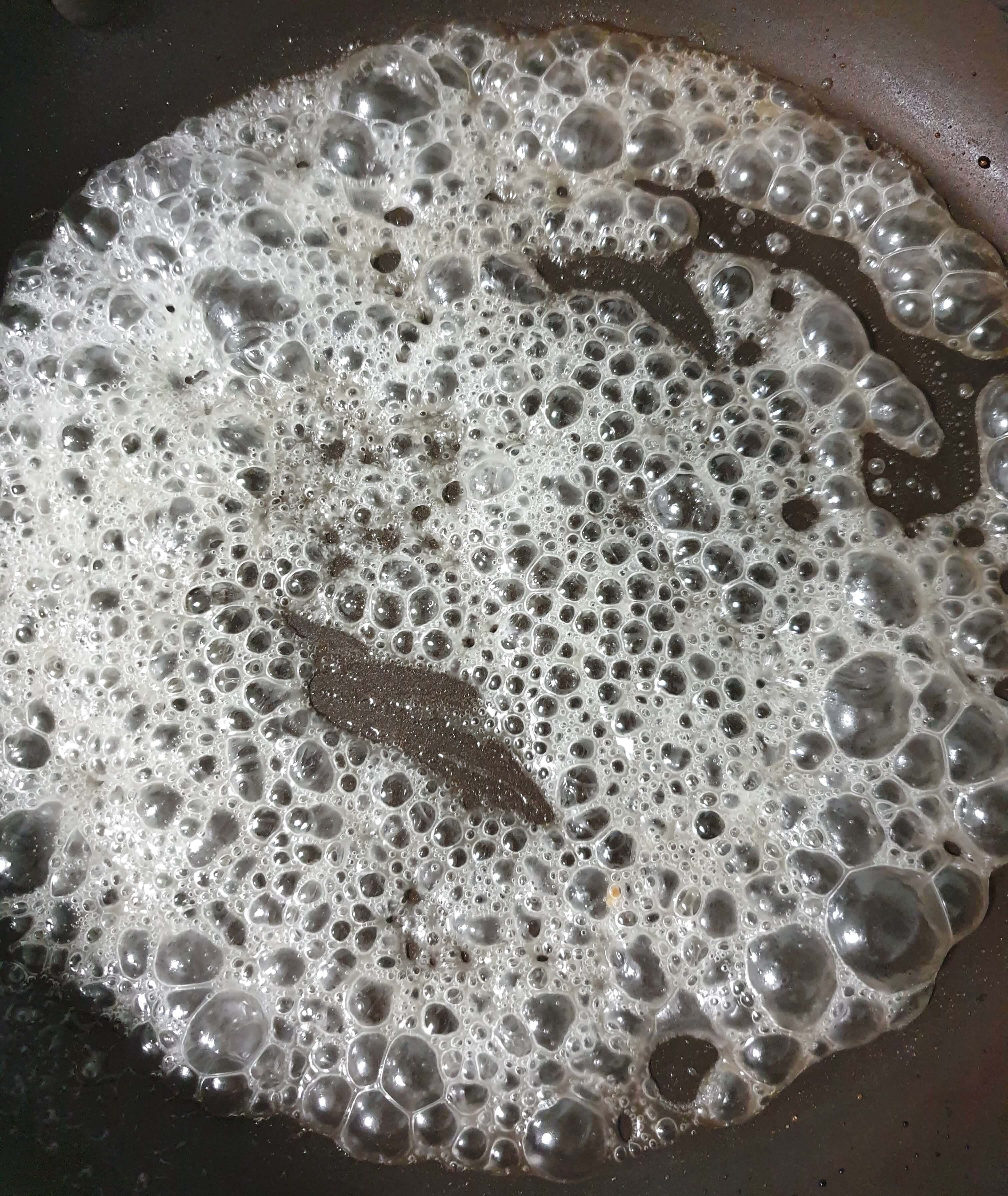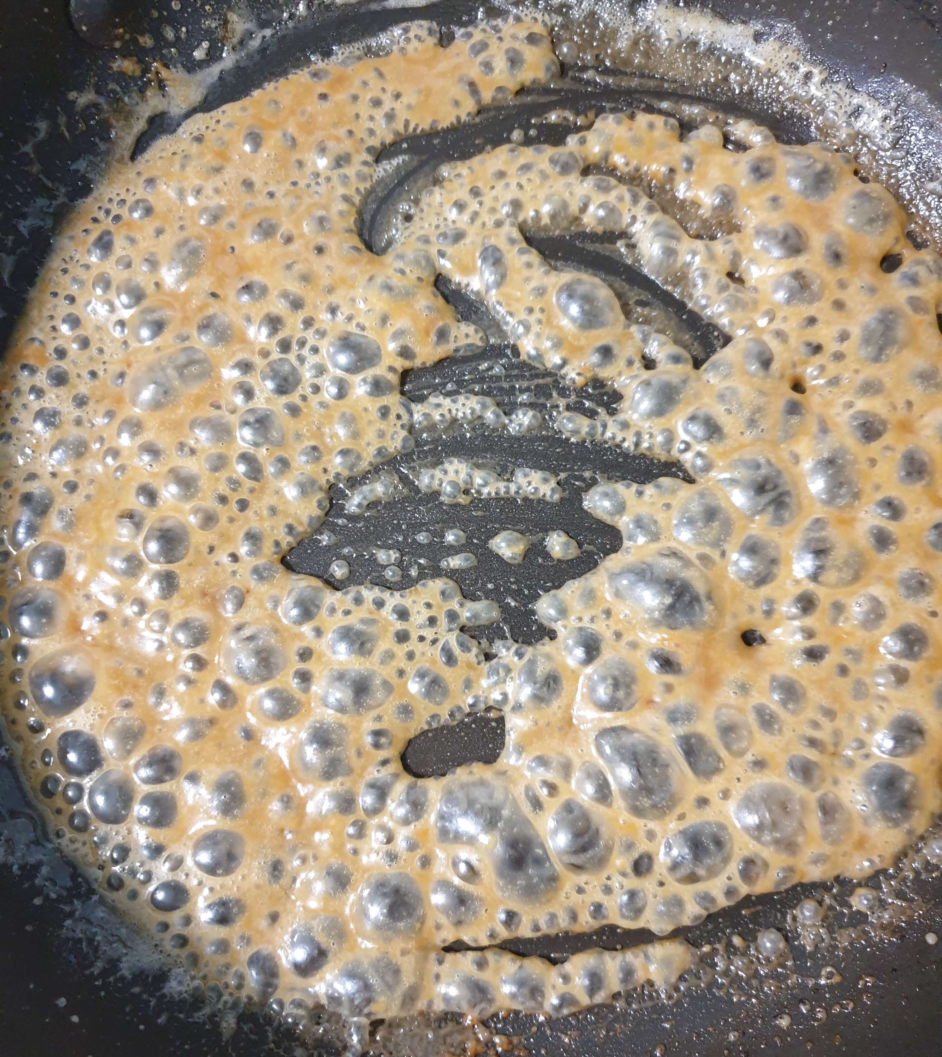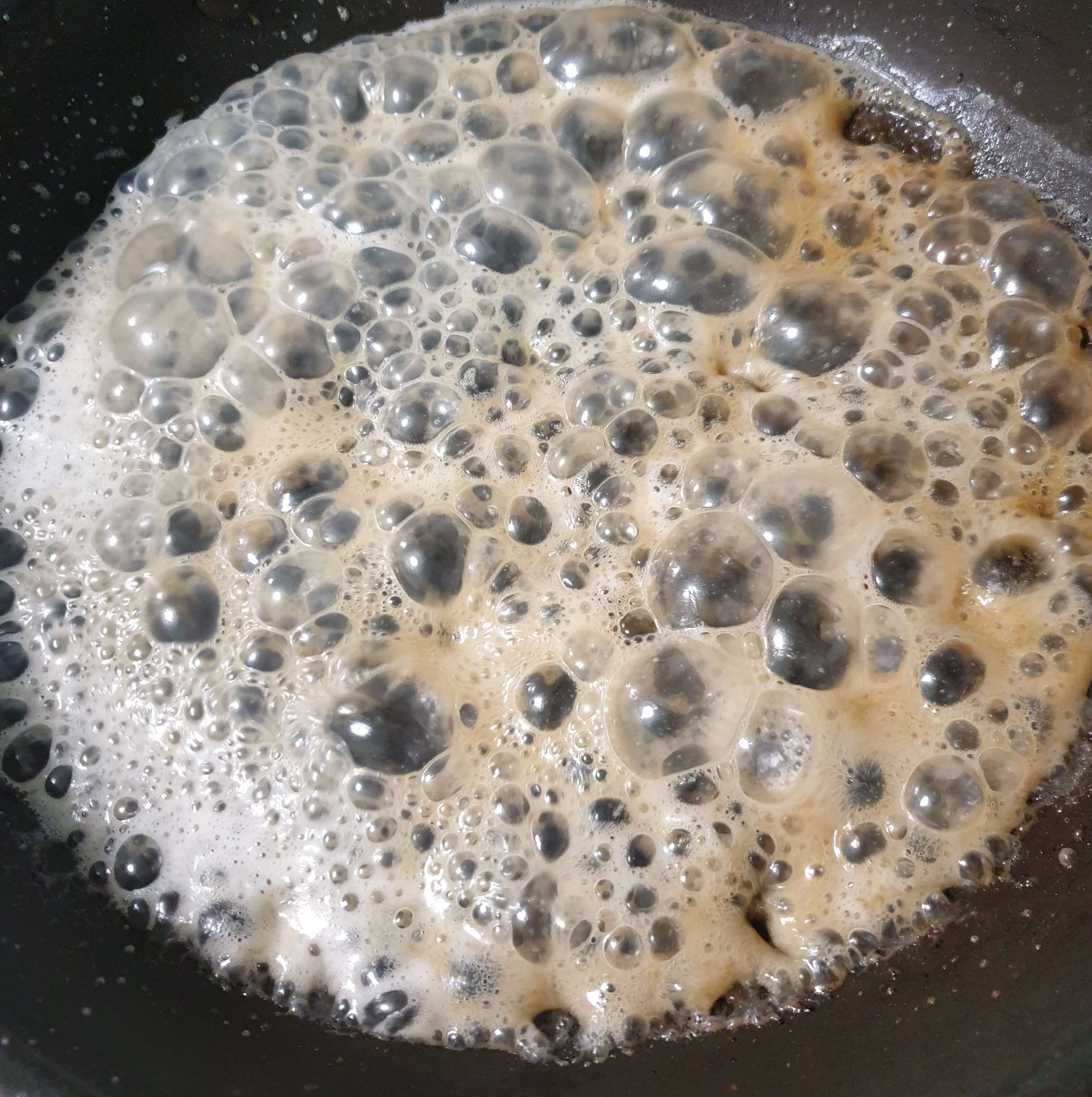 설탕 시럽이 약간 갈색으로 올라온 게 보일 때