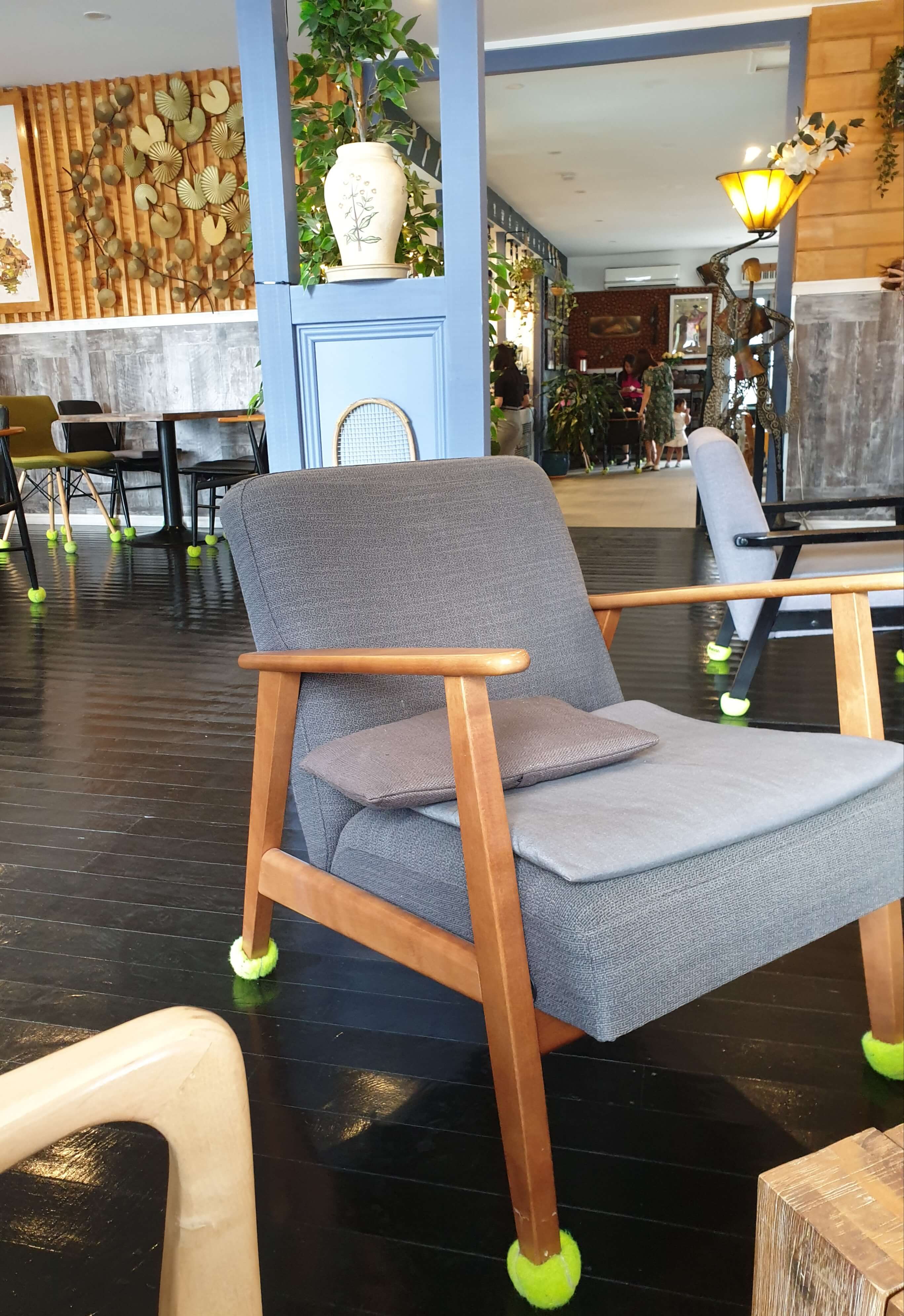 카페가 꽤 넓다. 테니스 클럽이라 그런지 테니스 공으로 의자를 다 보호해 두셨다.