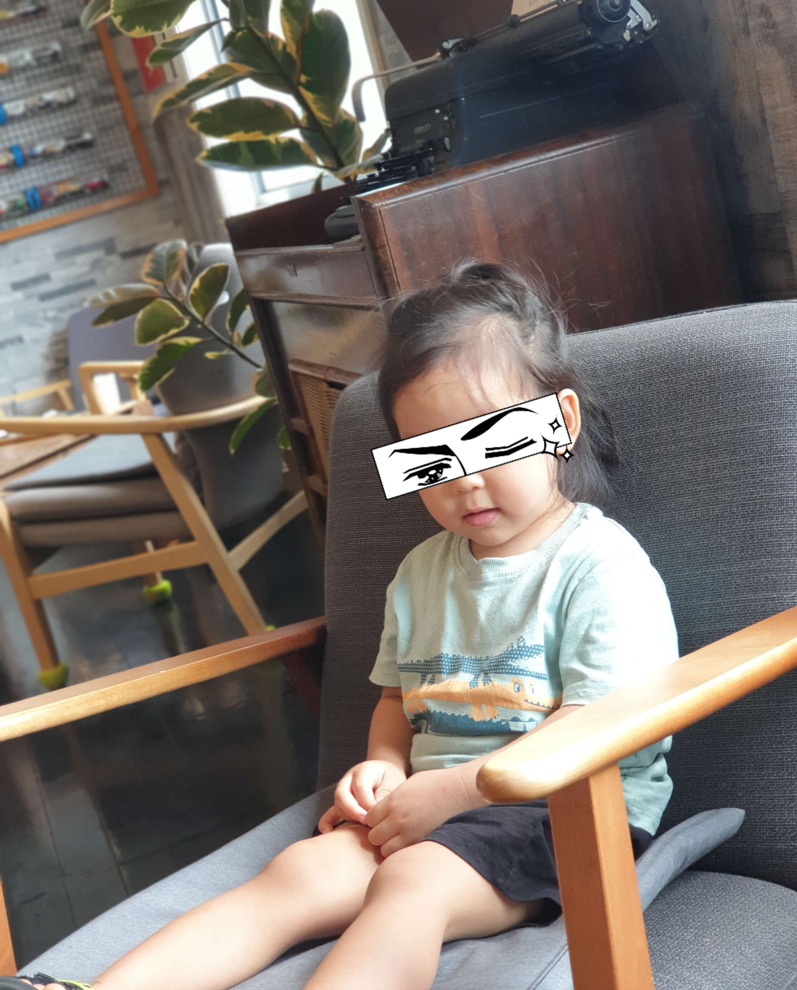 아기는 카페로 들어오면서 앞에 누가 묶어 둔 강아지에게 "안녕, 강아지야? 나는 강아지야, 만나서 반가워."라고 인사하고 들어왔다.
