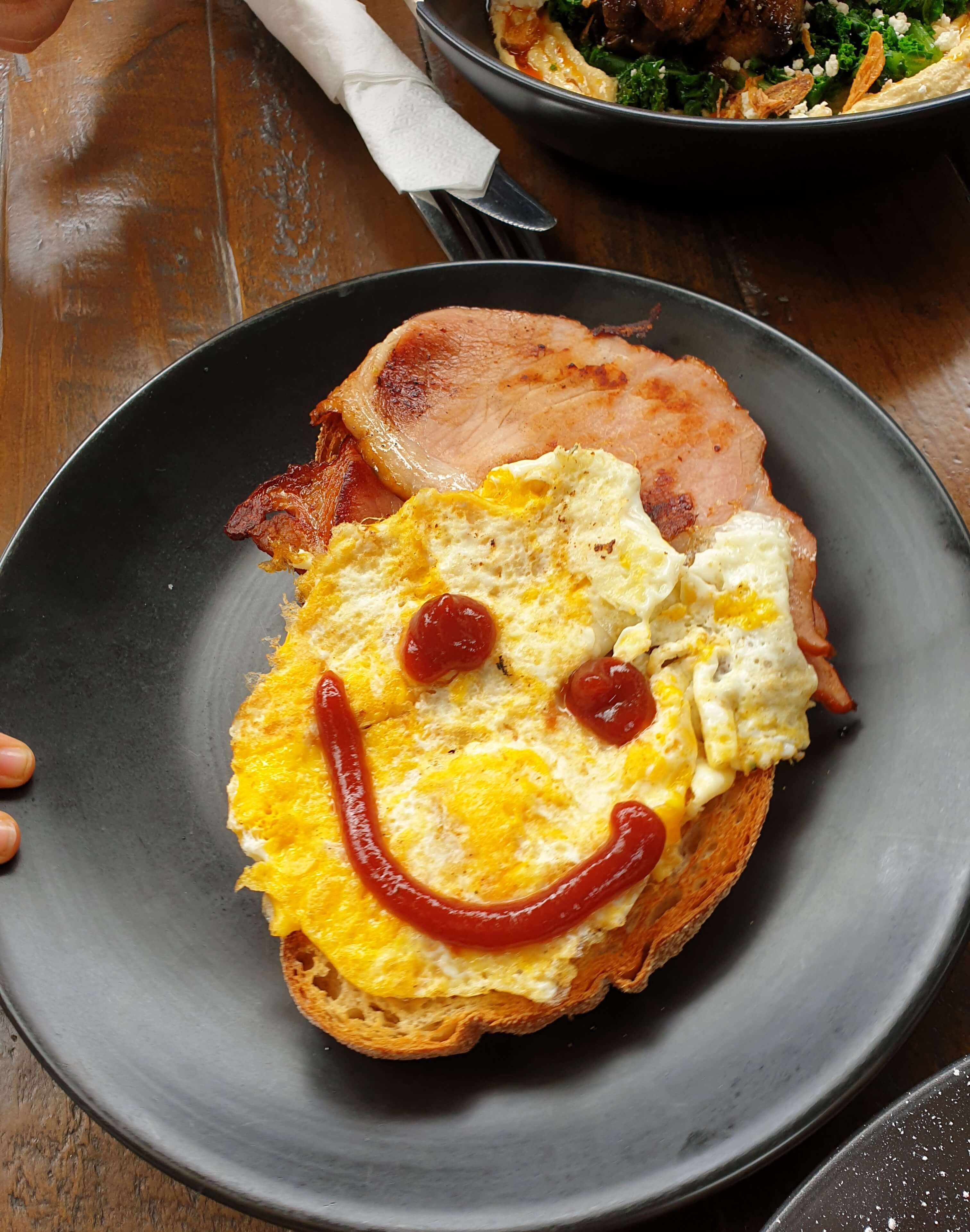 아이는 원래 입이 짧아서 다행히 계란 프라이 한 입, 베이컨 한 입, 빵만 먹었습니다.