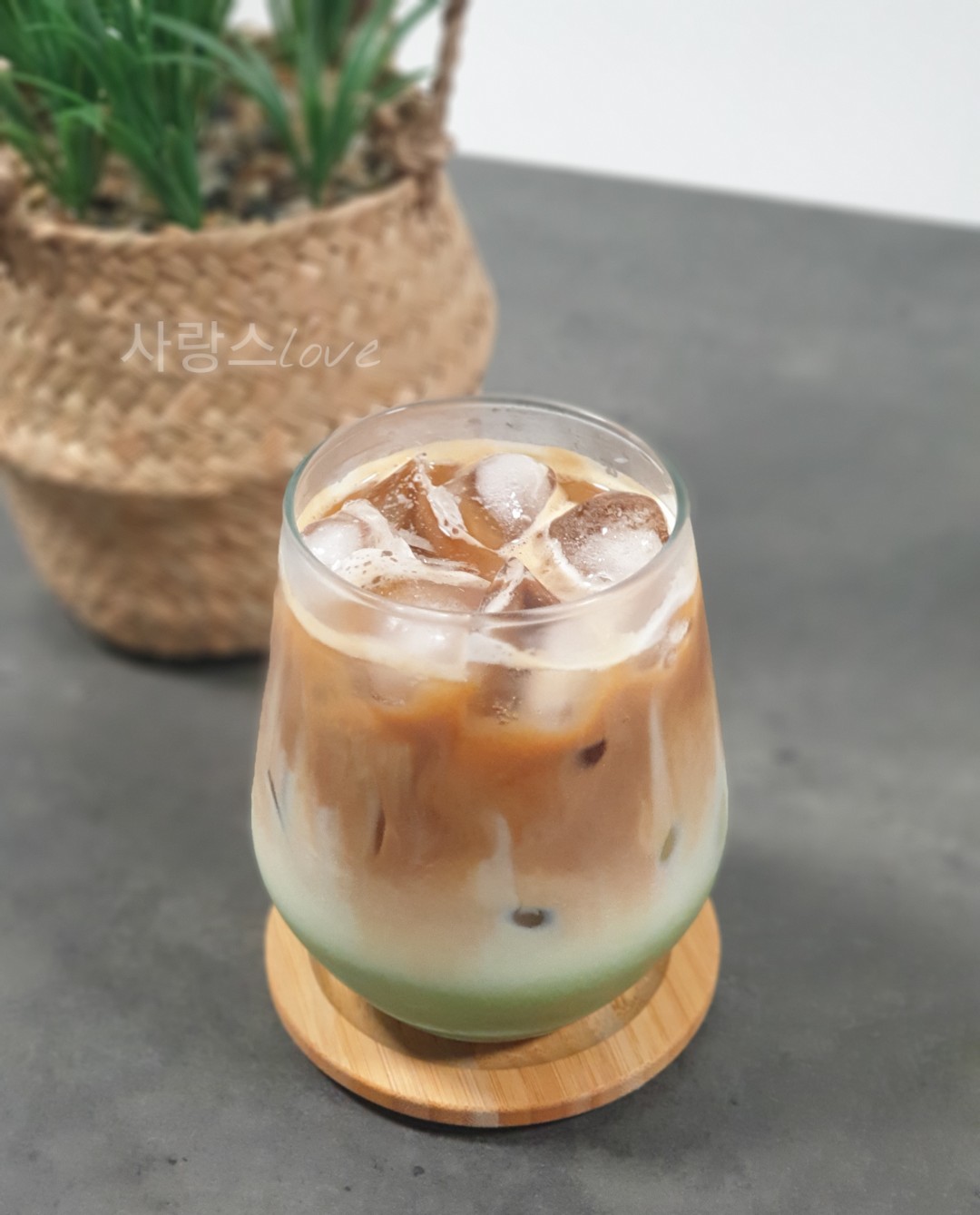 보기에도 예쁜 말차 카페라떼를 만들었어요.