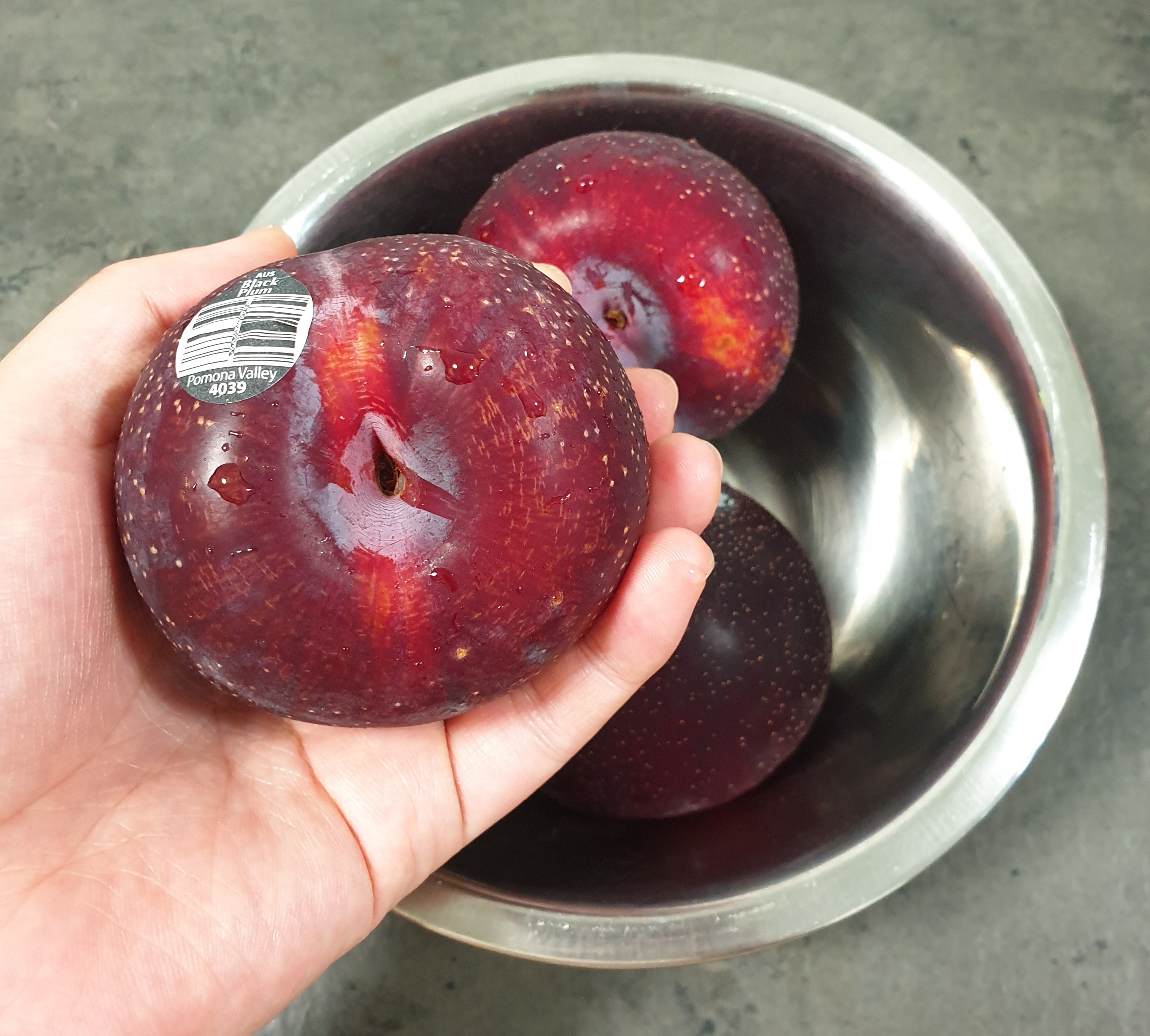 먼저 자두를 깨끗이 씻어서 주세요.