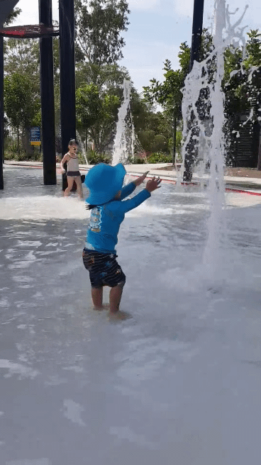 처음으로 집이 아닌 장소에서 제대로 된 물놀이를 즐기는 20개월 된 아들