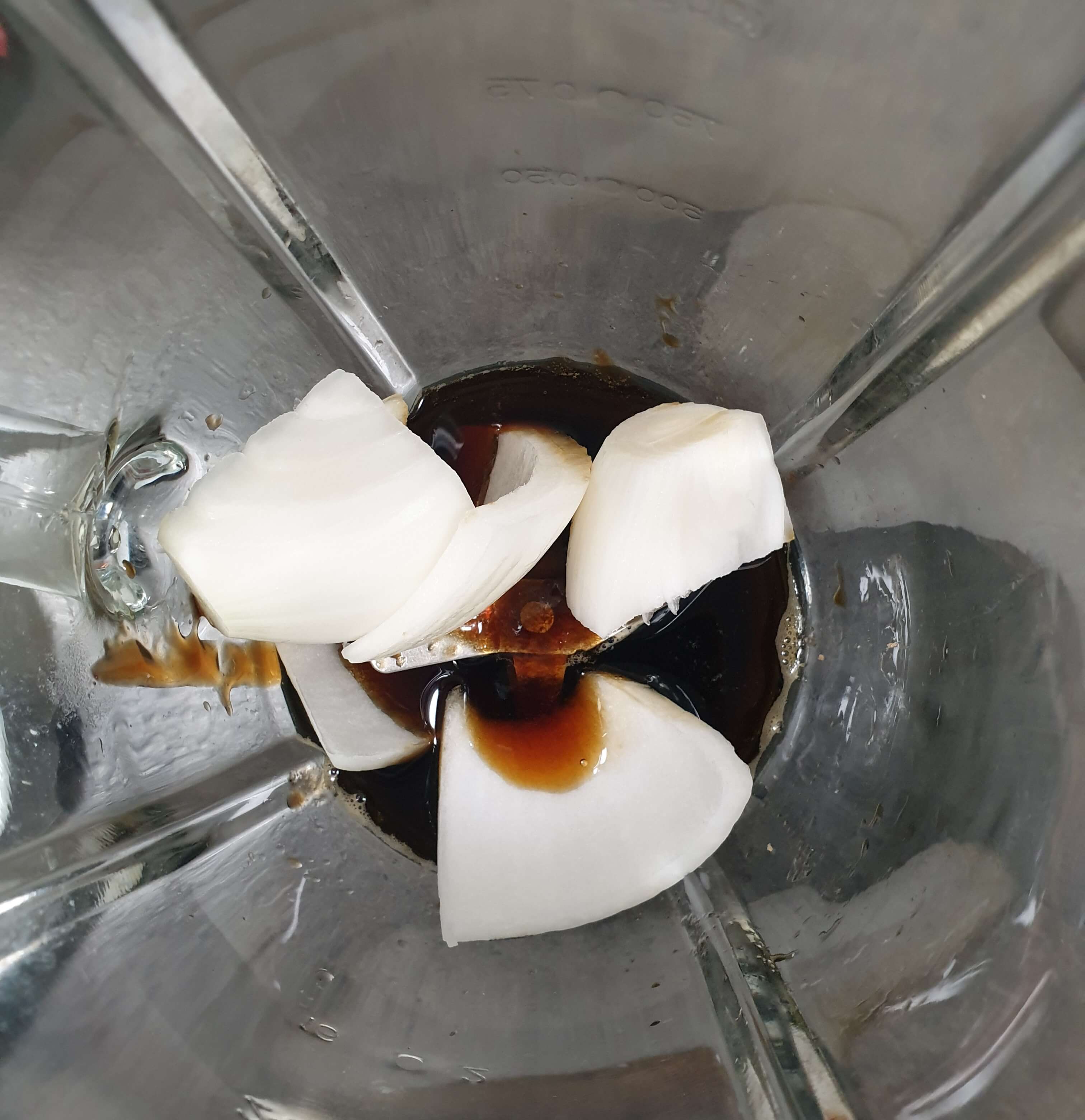 믹서에 간장 30g, 미림 30g, 굴소스 1큰술을