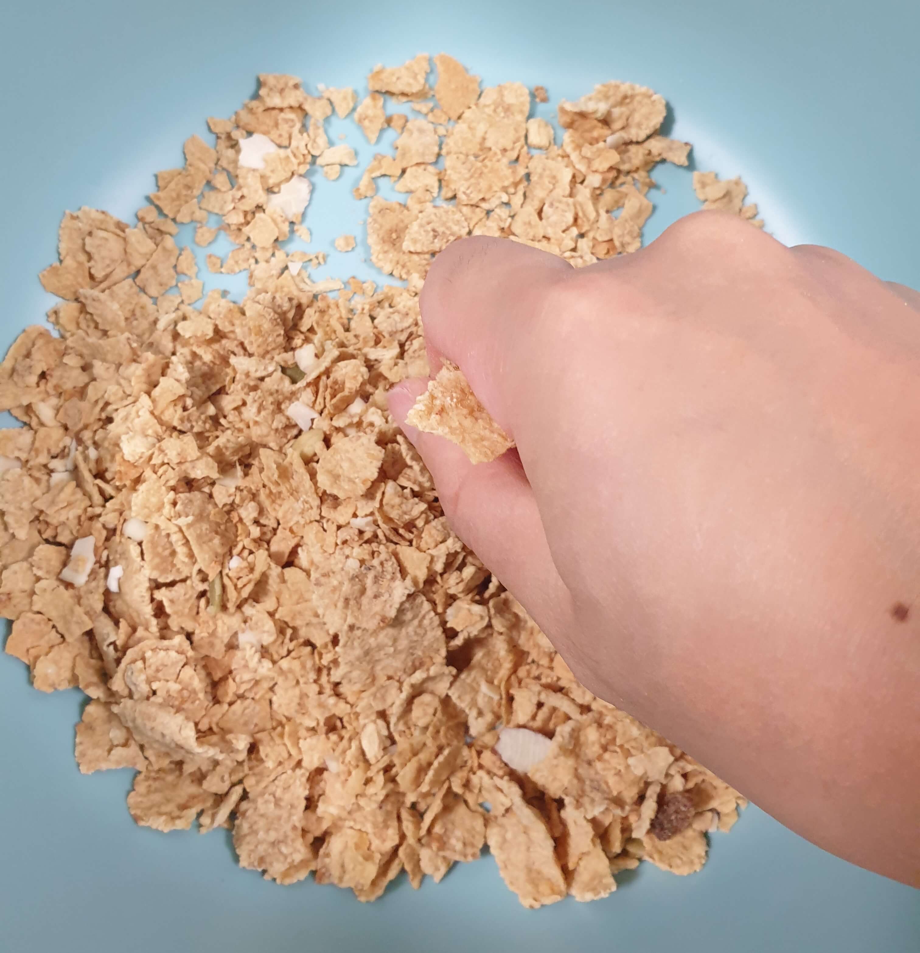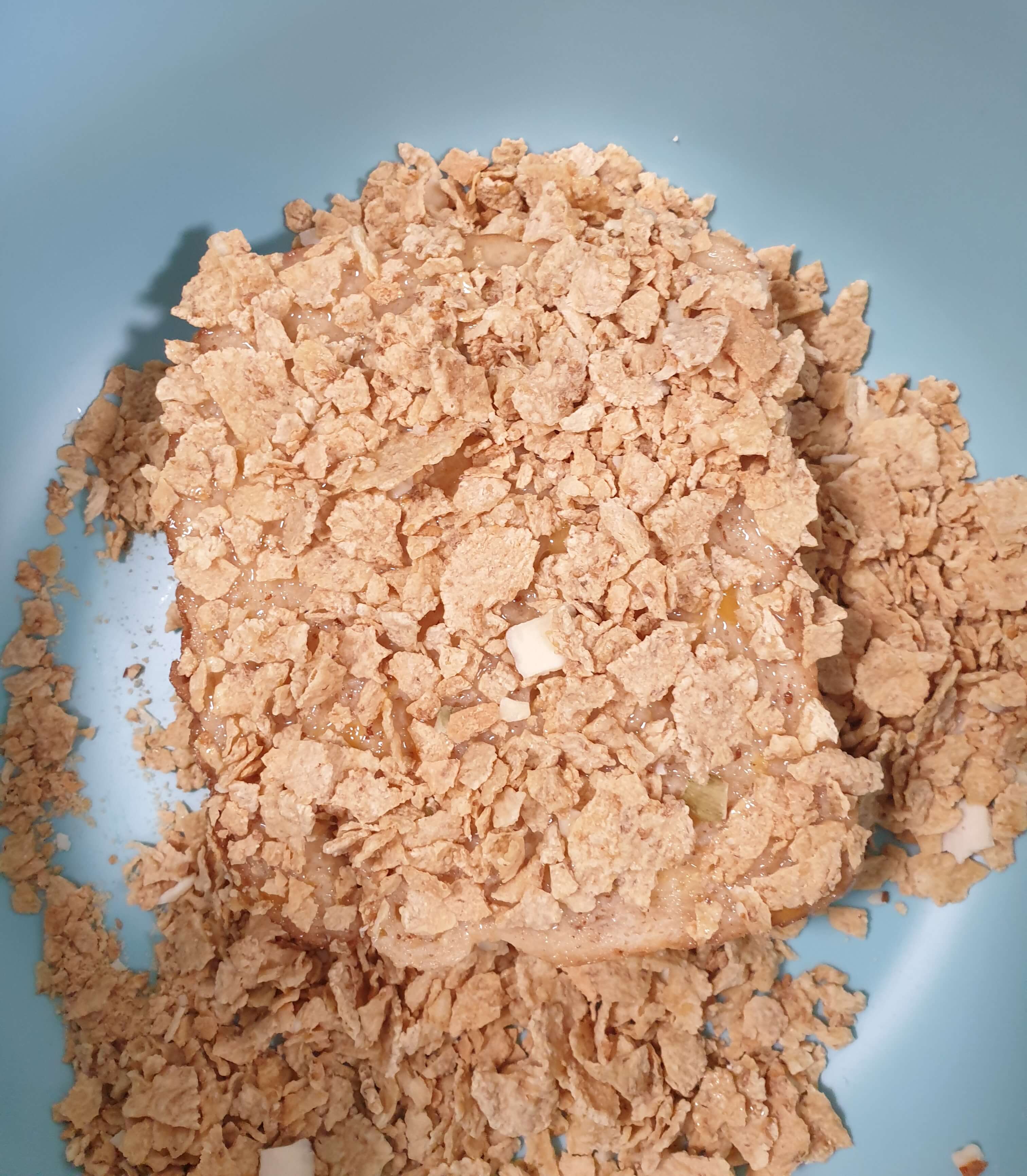시리얼을 양쪽으로 꾹꾹 눌러 붙여 주세요.