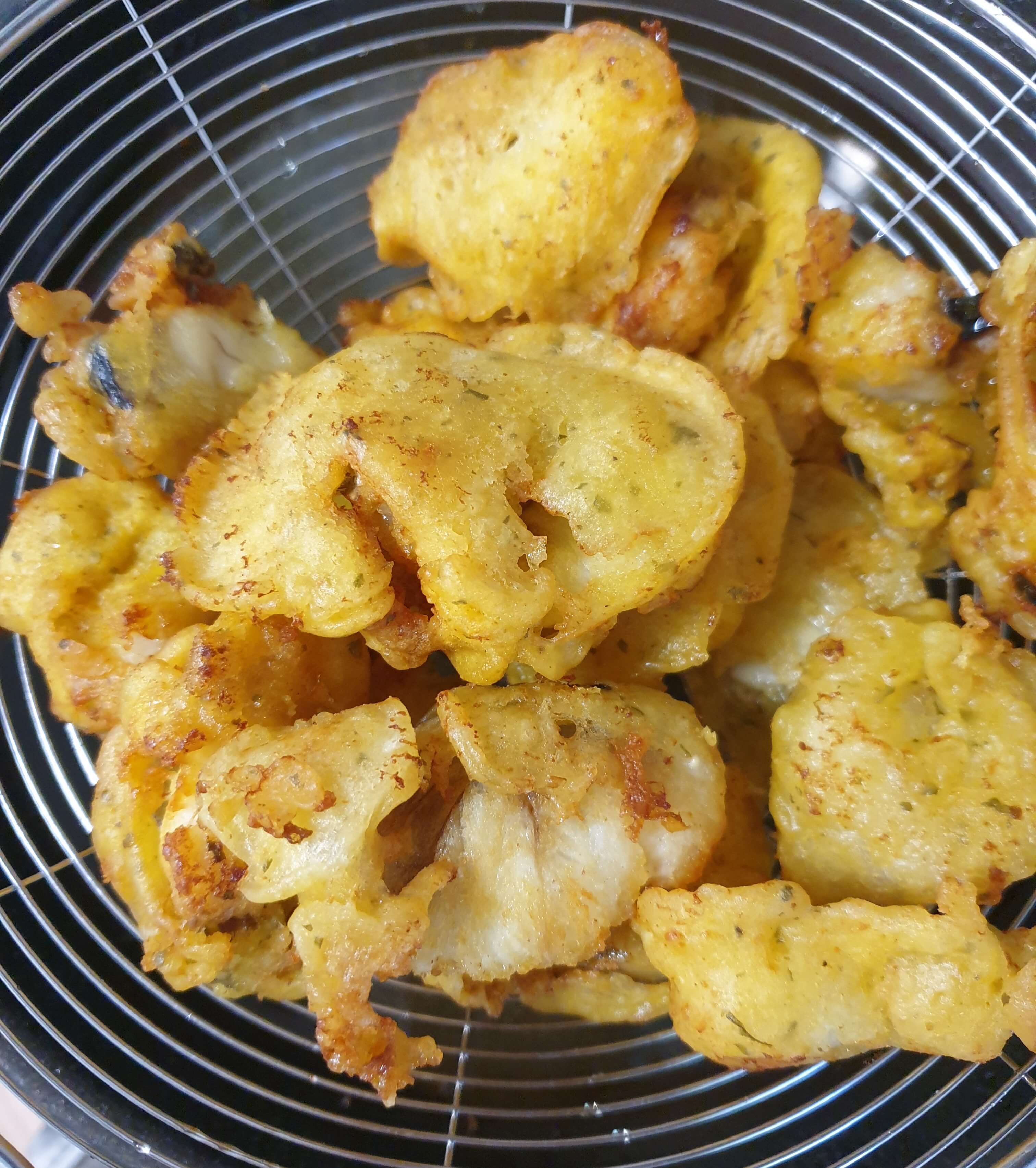 껍질 부분은 튀겨도 바삭해지지 않더라고요. ㅠ