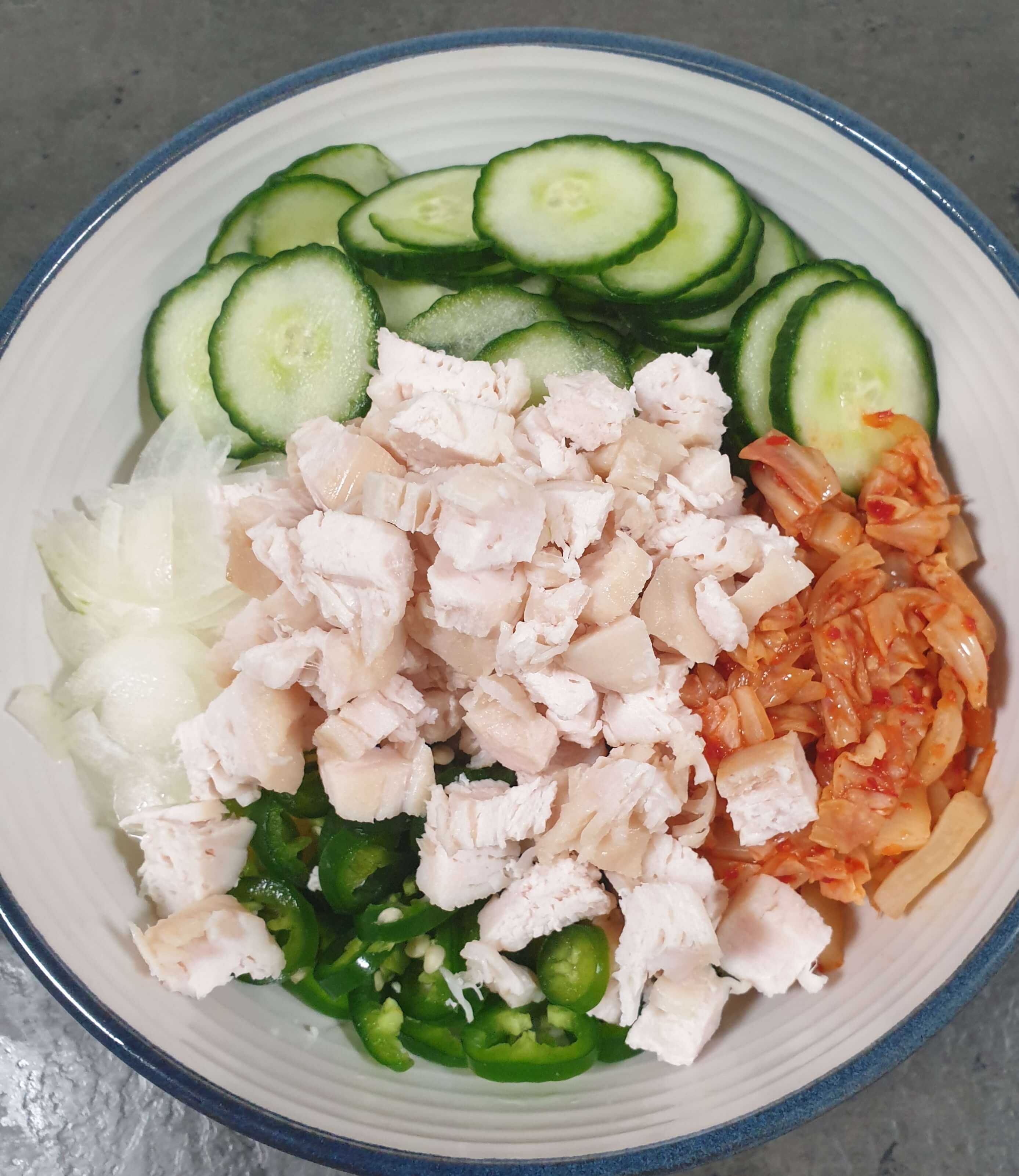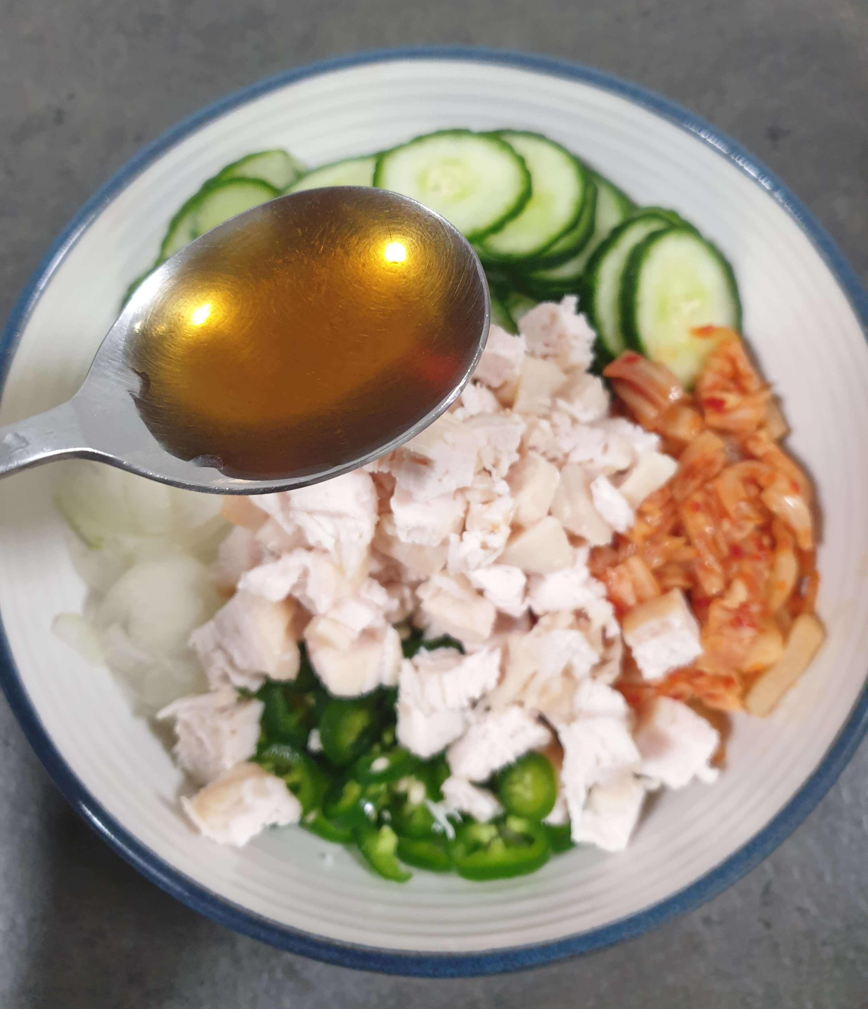 저는 닭가슴살도 100g 정도 넣었어요.