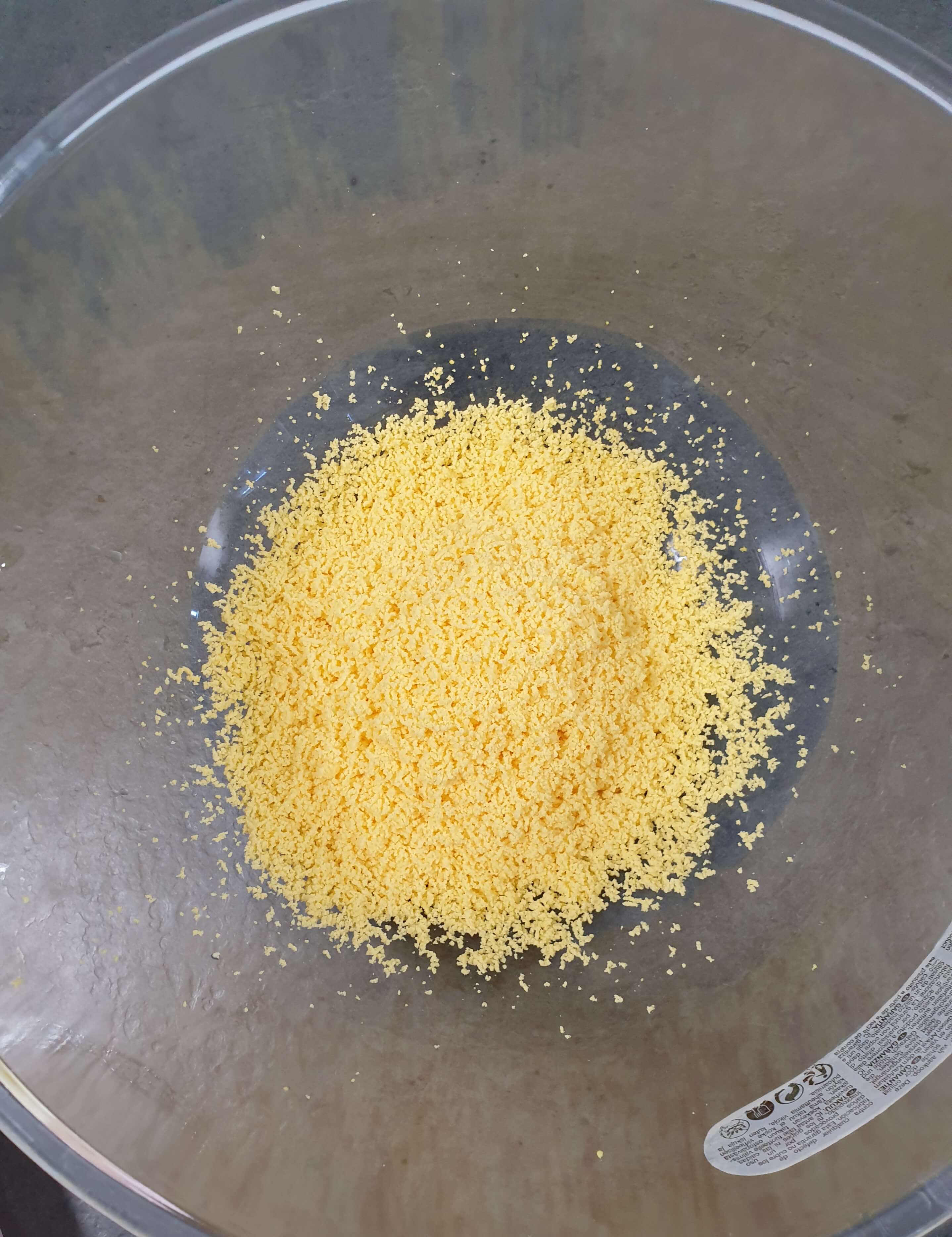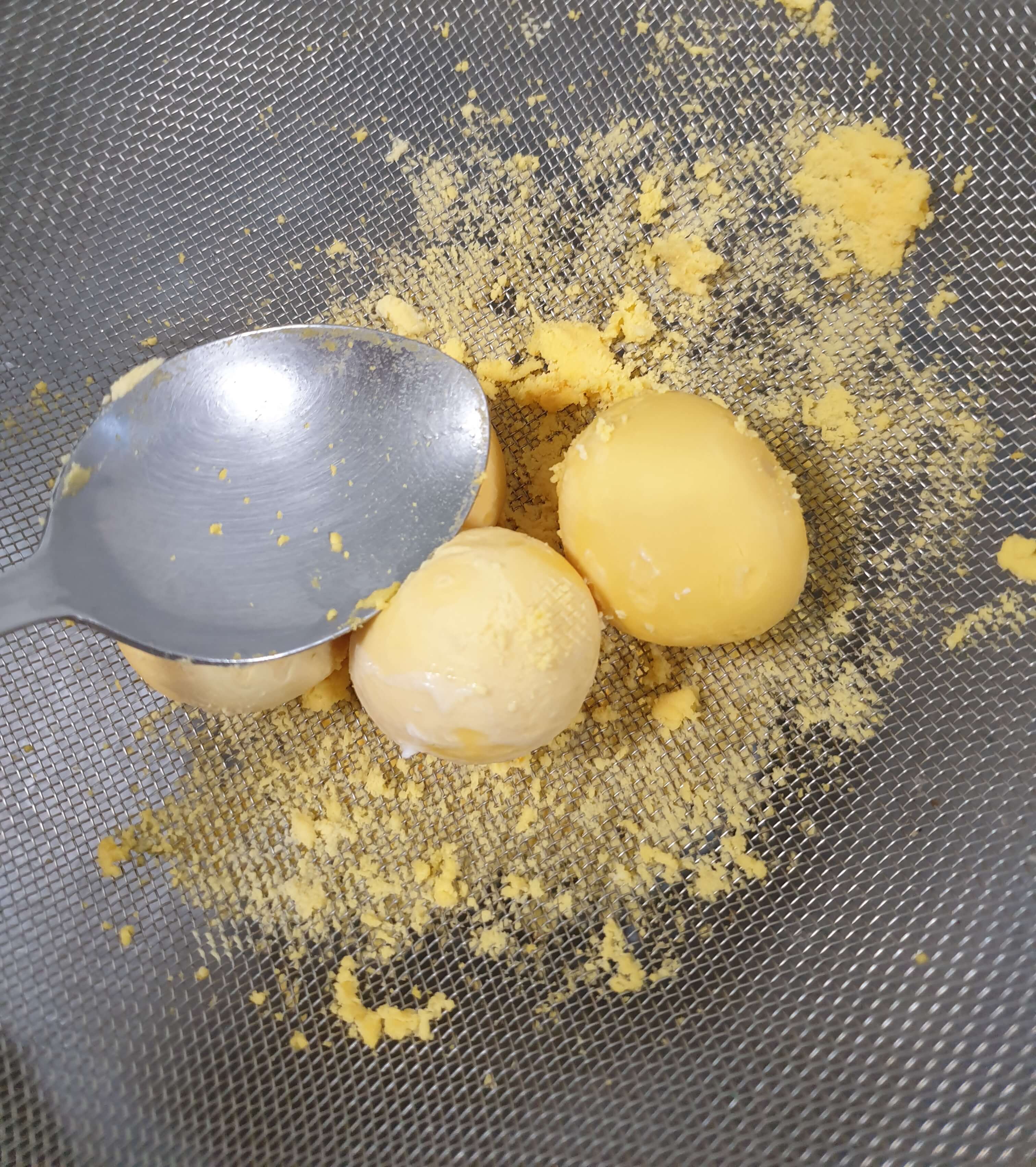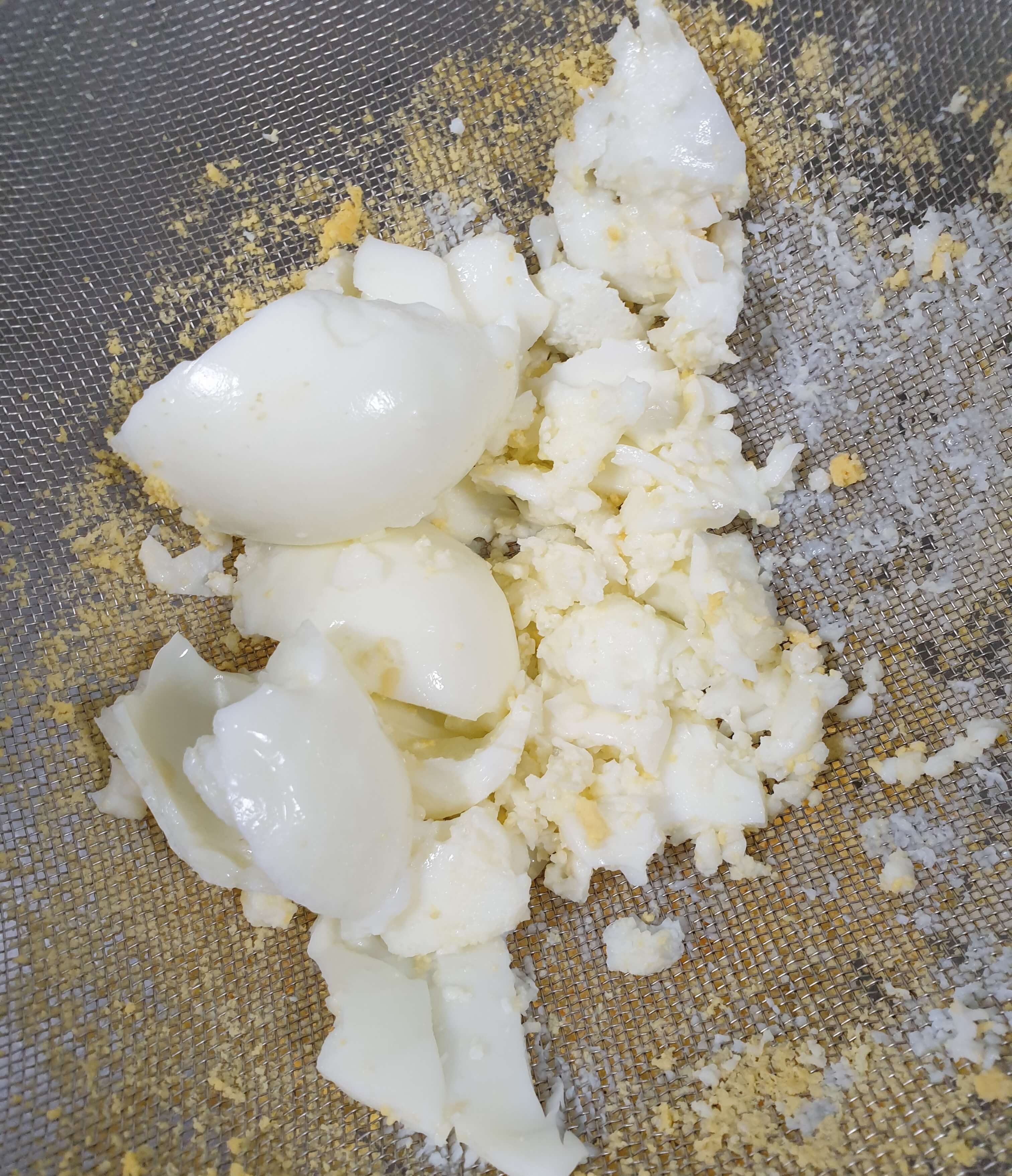 삶은 계란을 체에 내려서 만드는