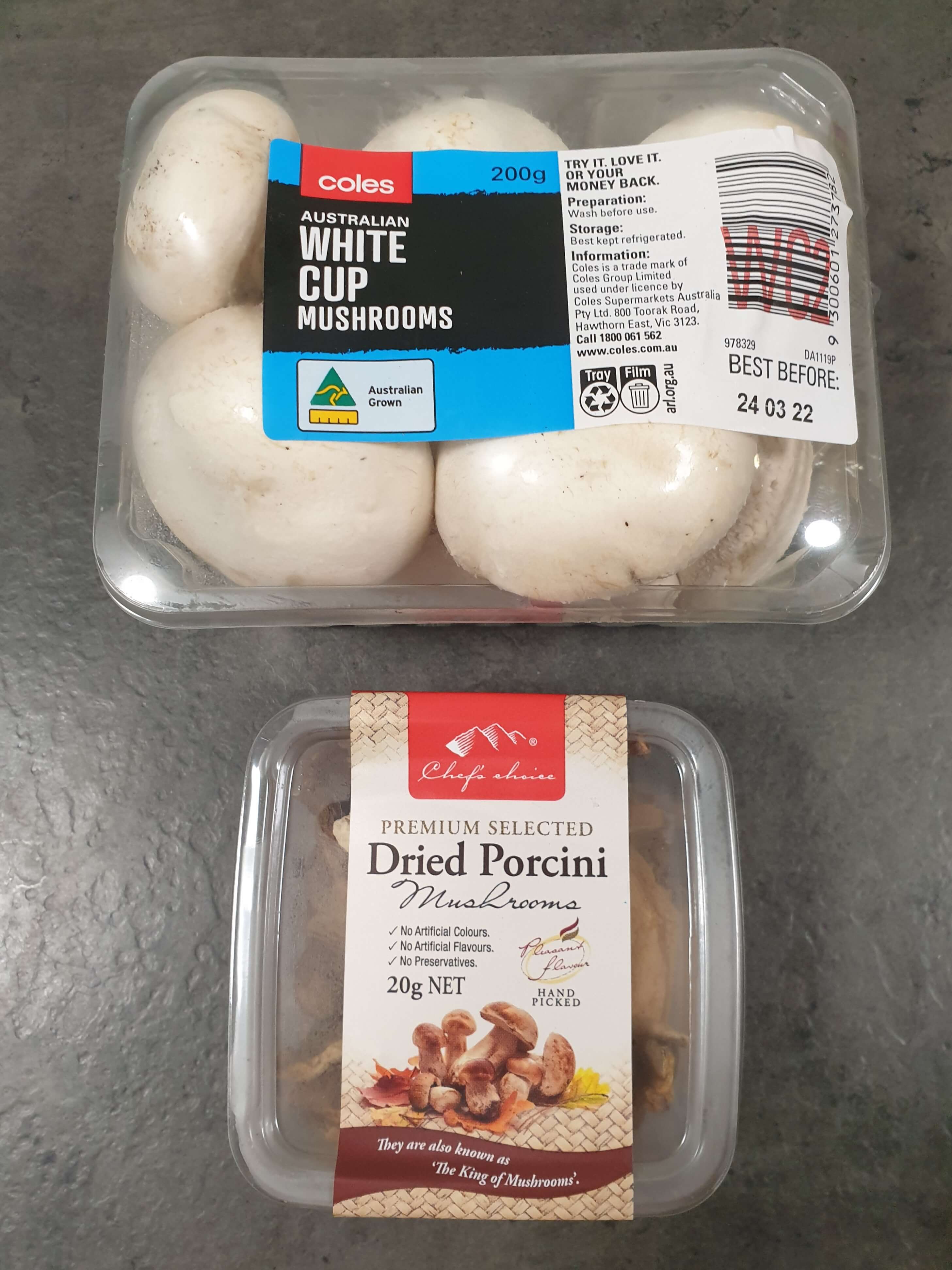 저는 양송이와 드라이 포르치니를 사용했어요.