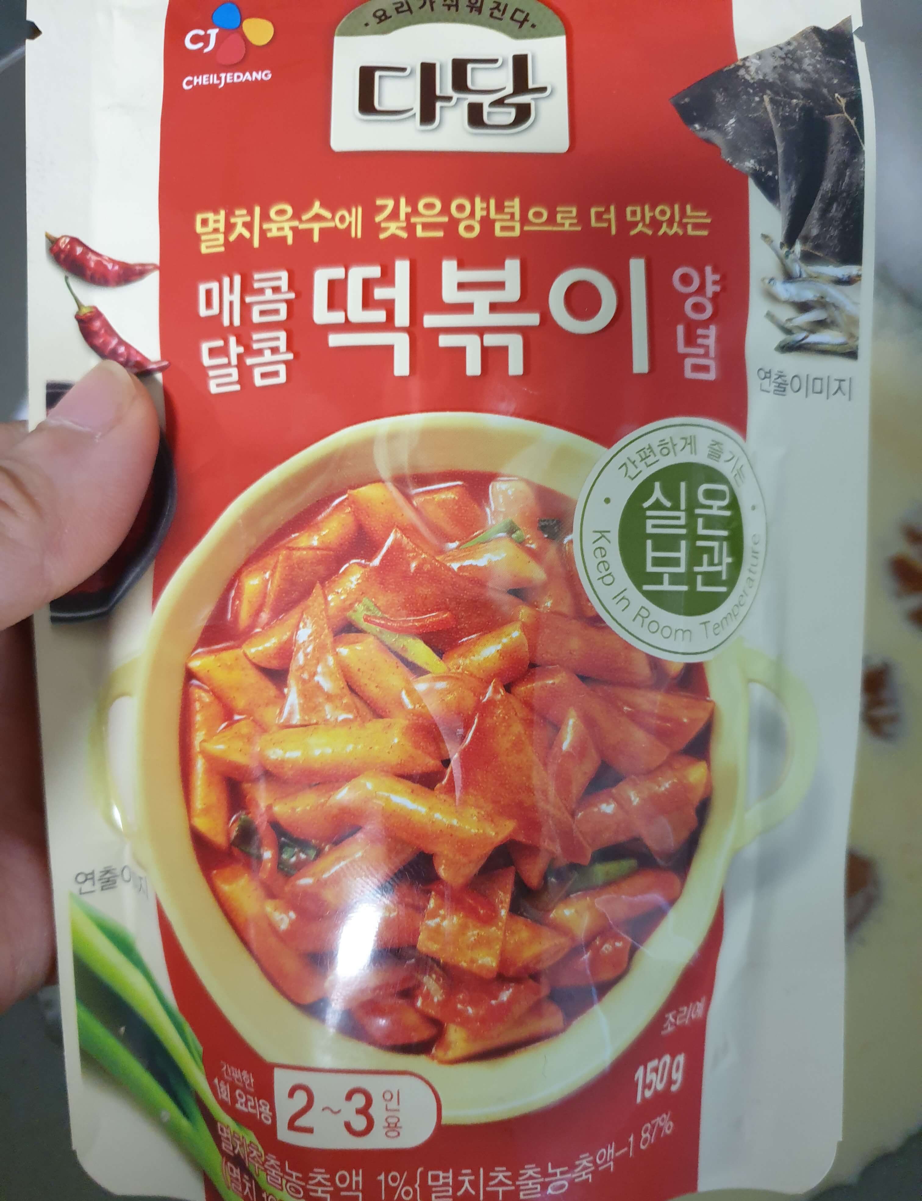 시판 떡볶이 소스 2~3인용을 넣어 주세요.