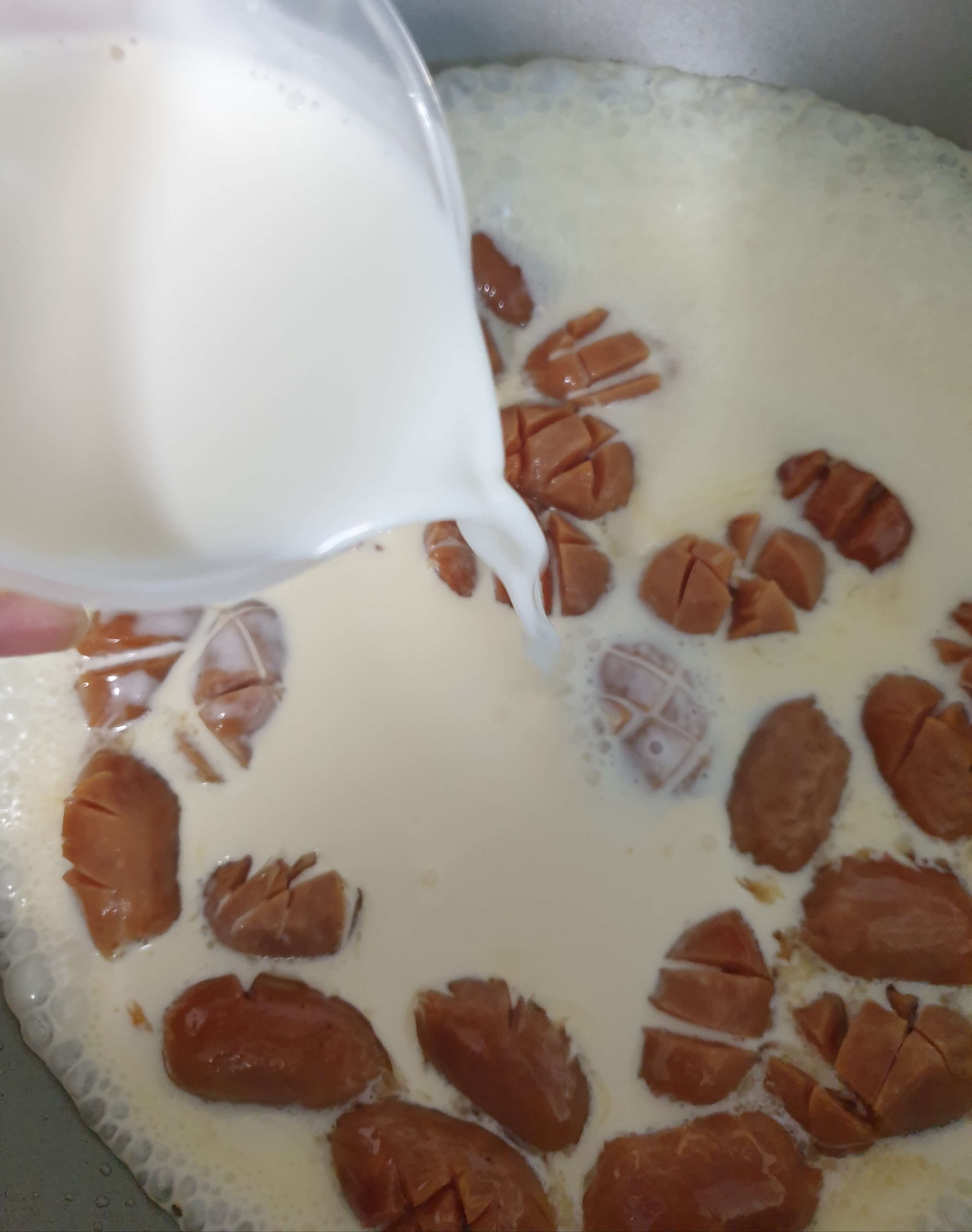우유랑 생크림을 더 부어서 졸였더니