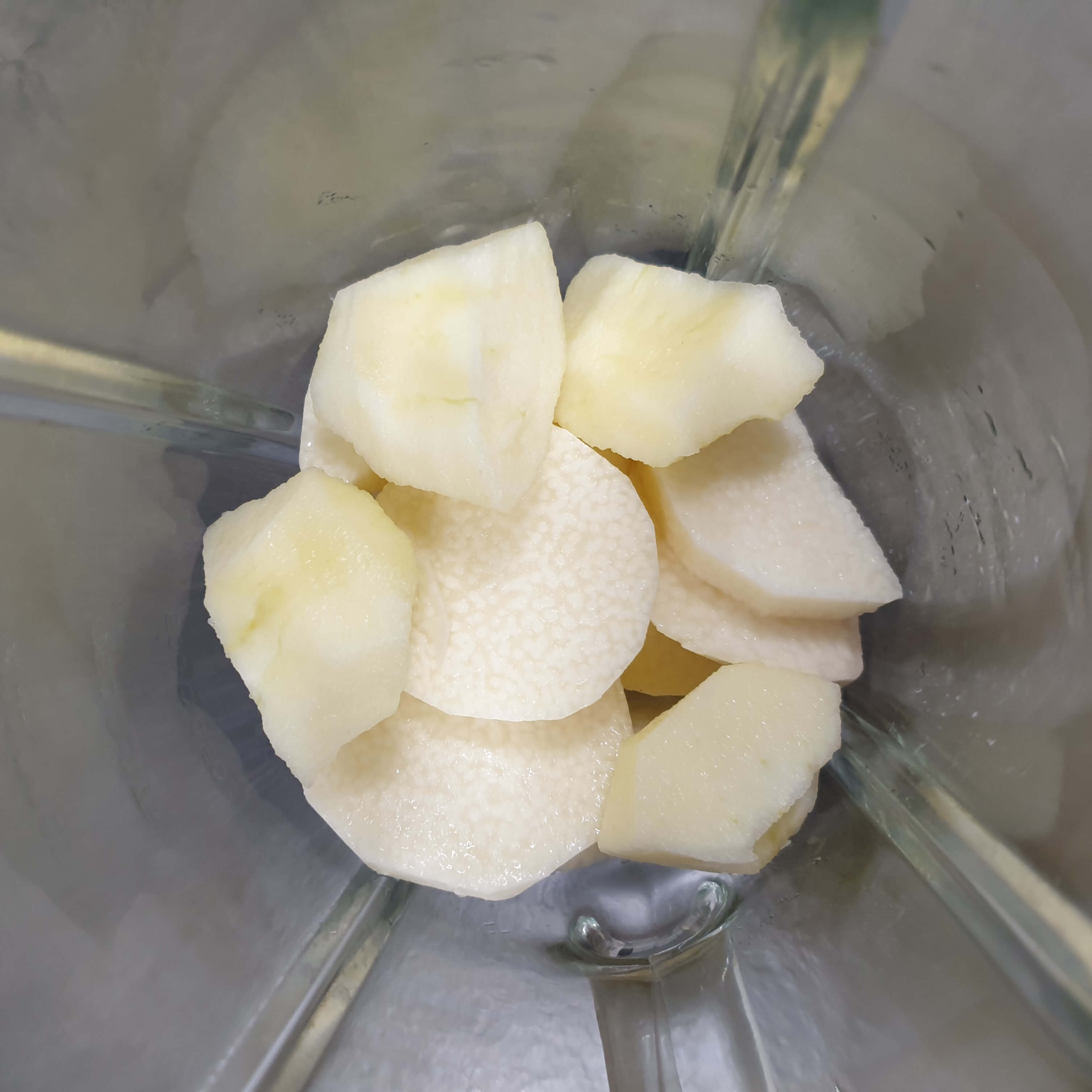 마 200g과 사과 반개를 믹서에 넣어 주세요.