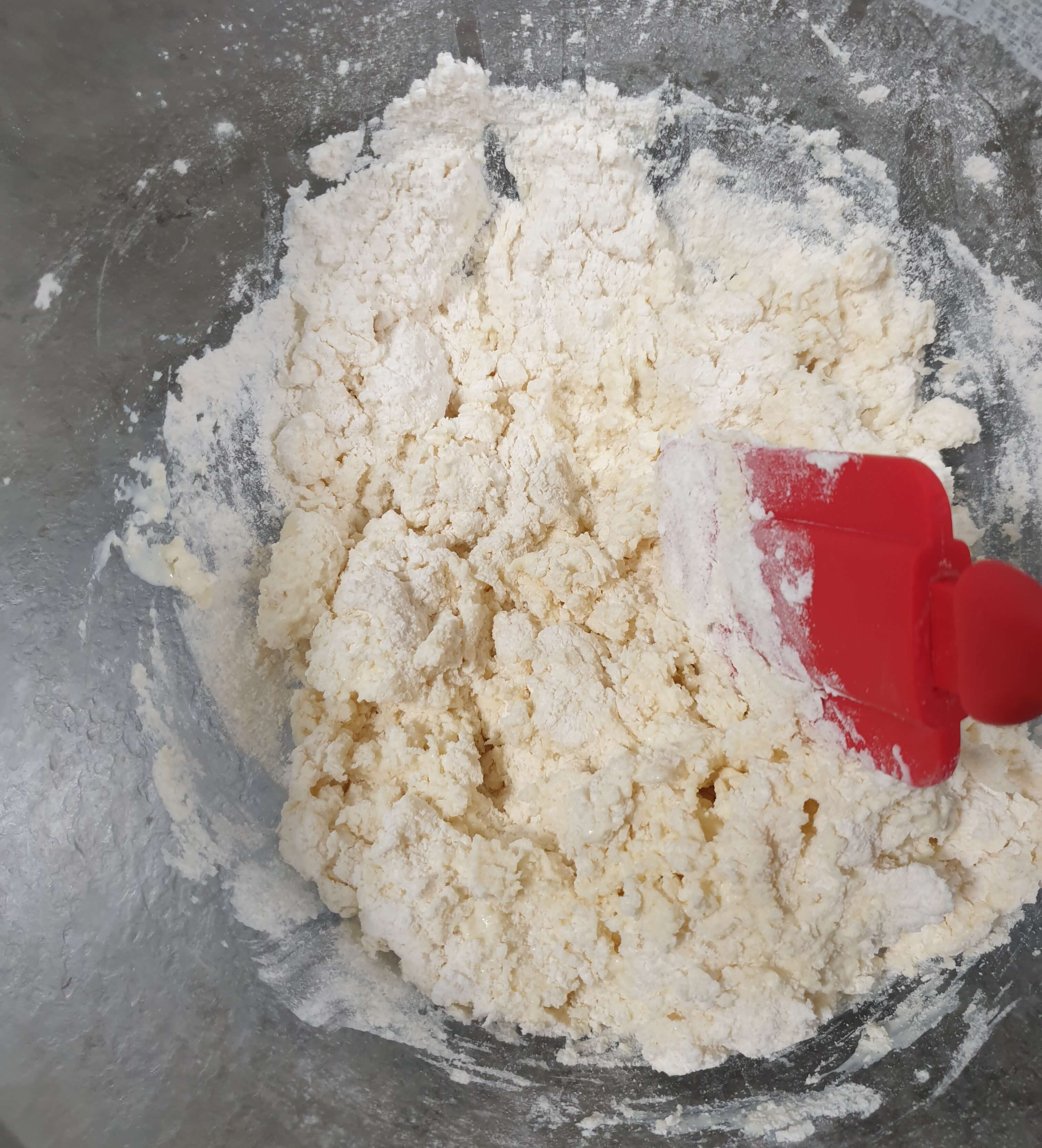 열심히 체도 치고, 재료들을 다 넣고 날가루가 안 보이게 섞어 주었다.