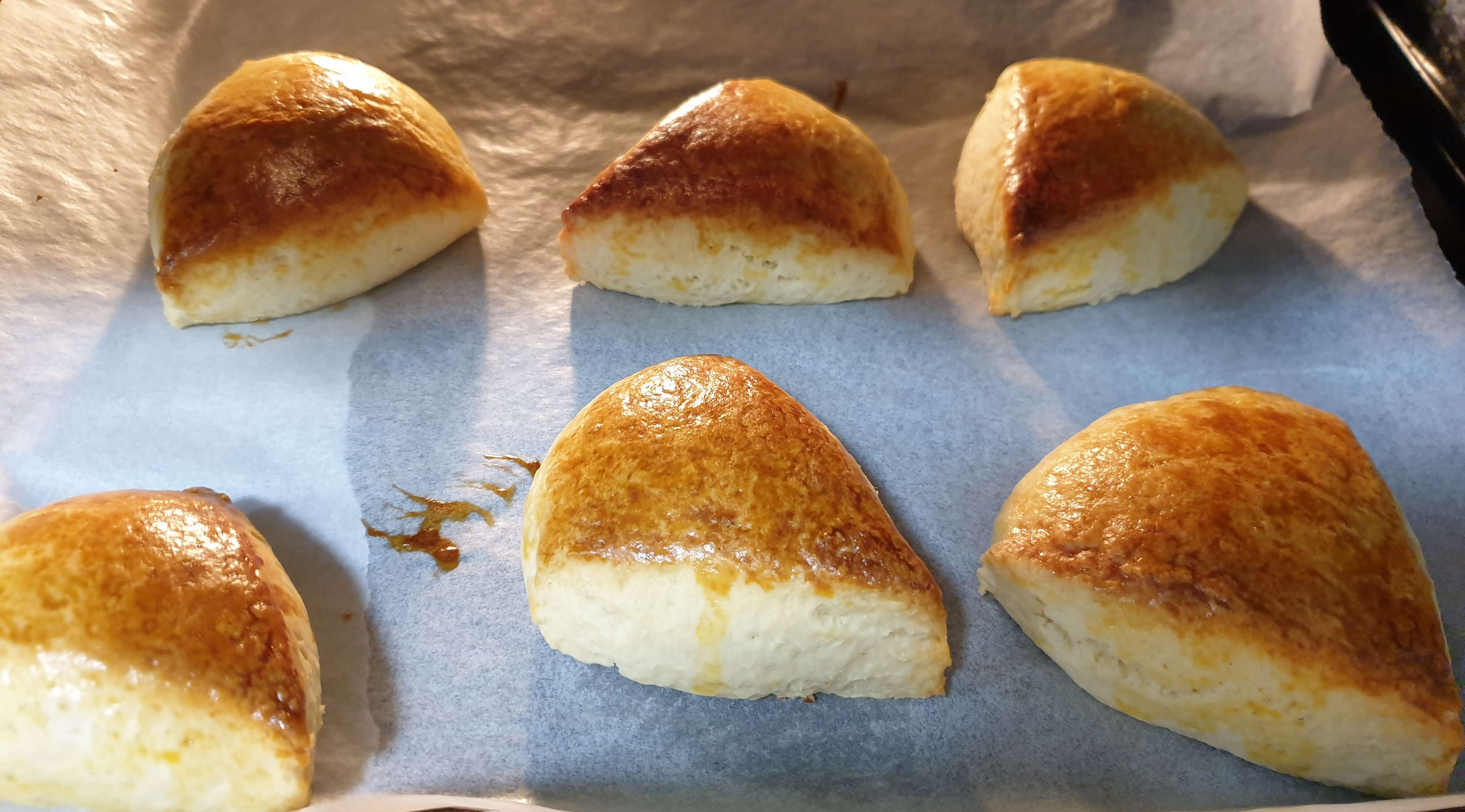 아랫면 색이 덜 나온 게 아쉬워서 뒤집어서 오븐 맨 윗 칸에 올리고 더 구웠다.