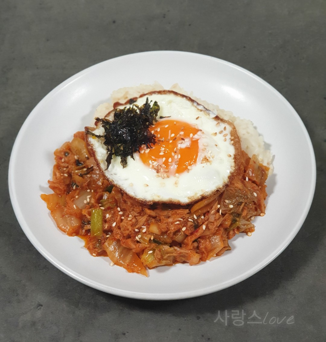 간단하게 김치참치덮밥이 완성 됐습니다.