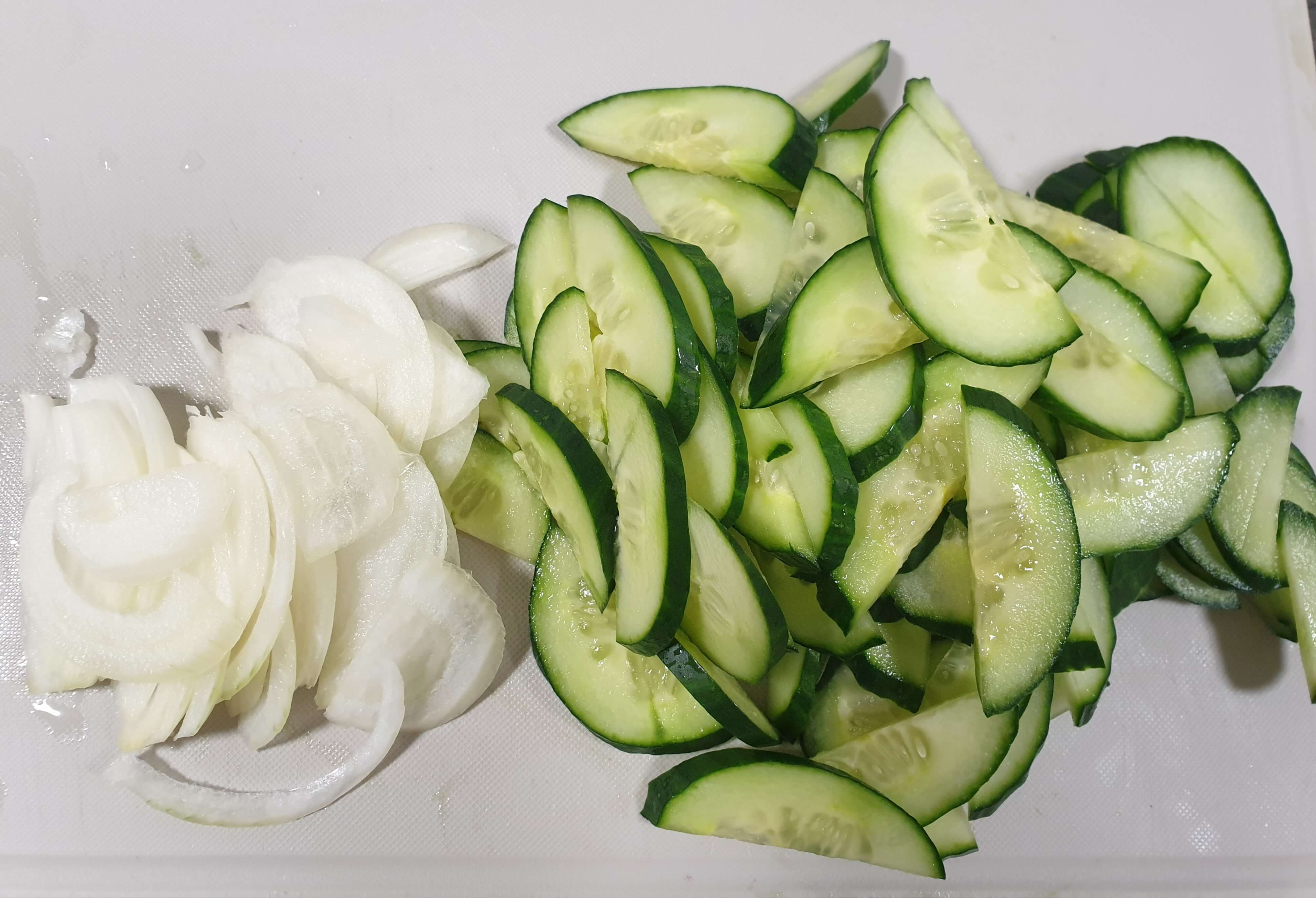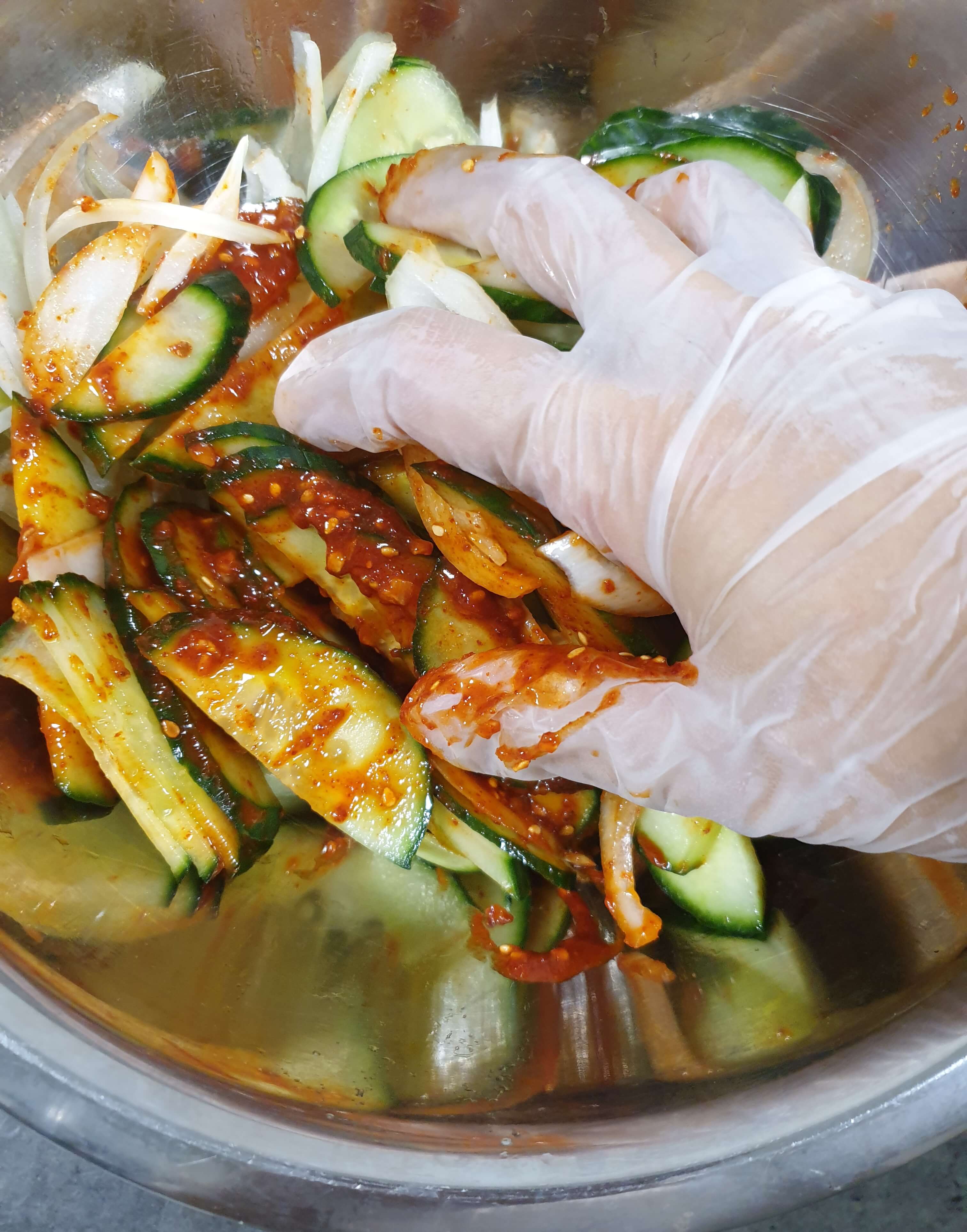 썰어놓은 오이와 양파도 볼에 담고