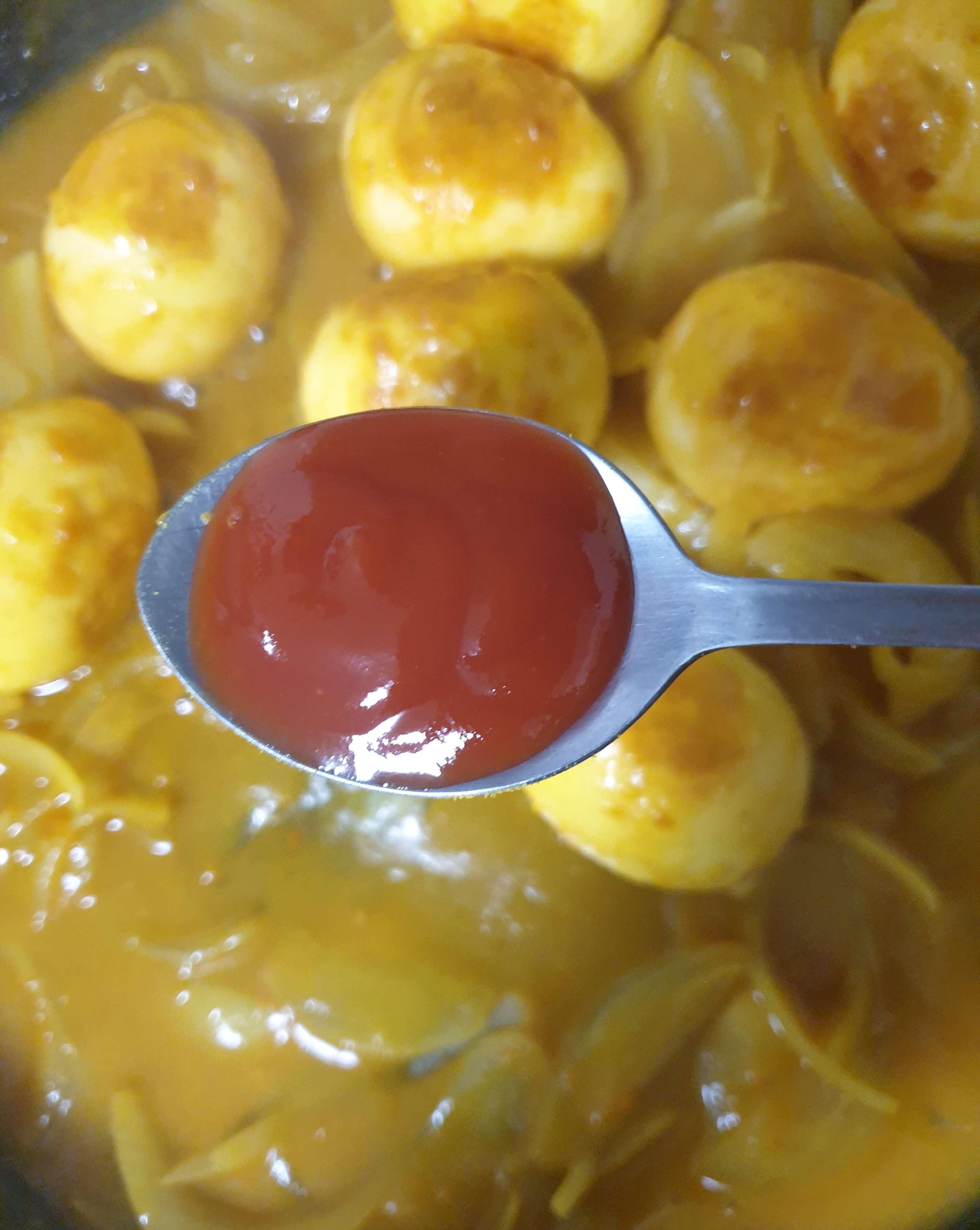 케첩 1큰술을 넣고 졸이듯 끓여 줍니다.