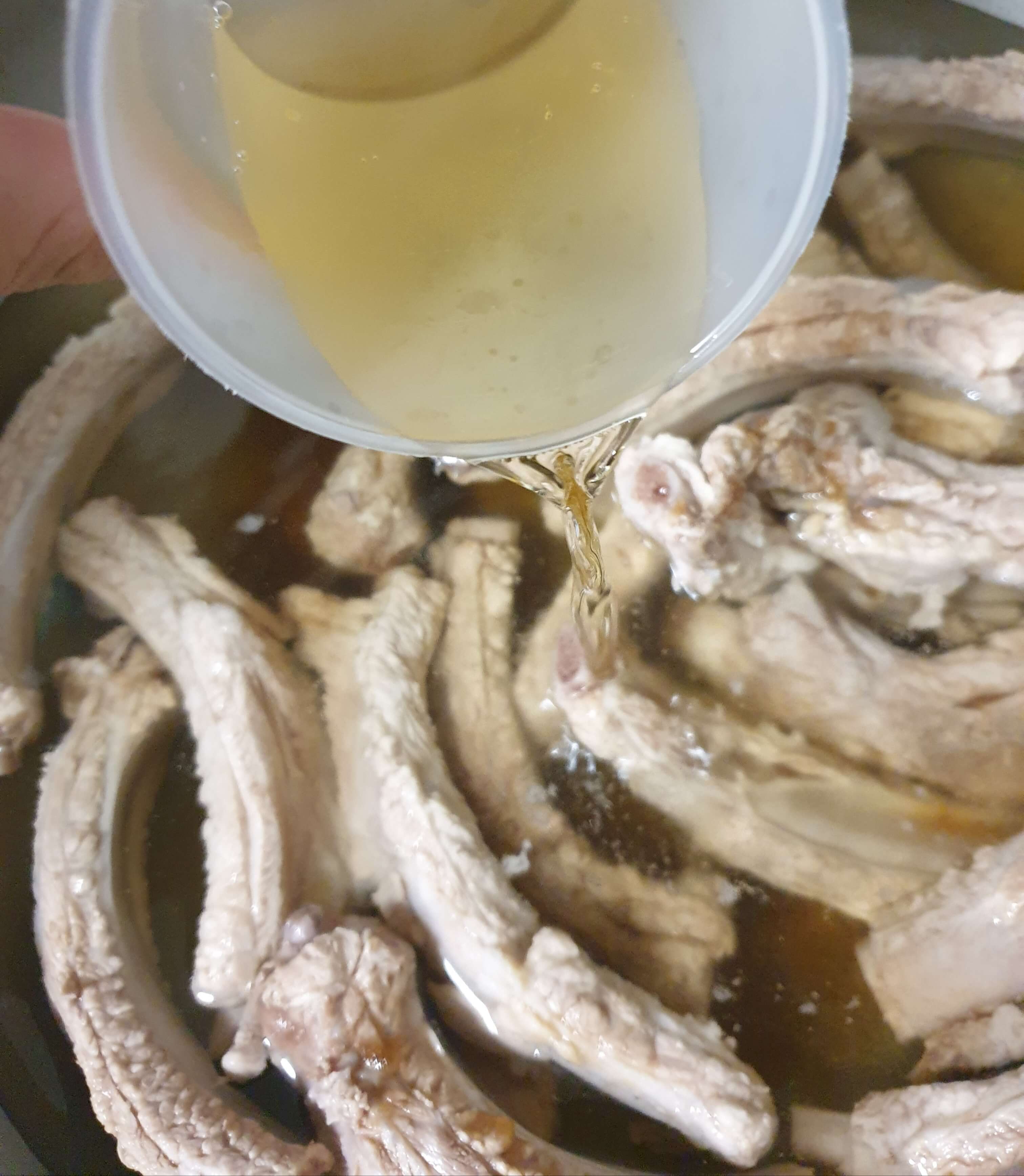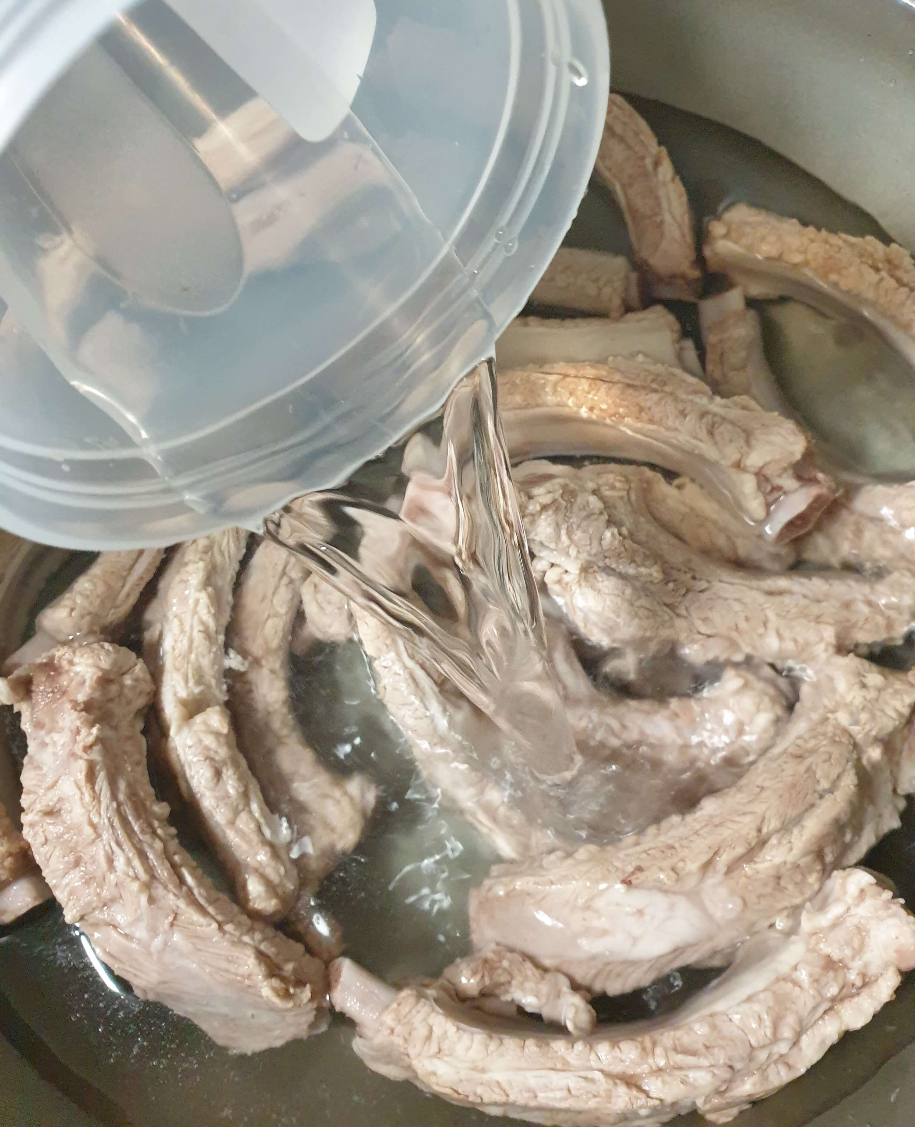 삶은 등갈비는 흐르는 물에 불순물을 헹군 후