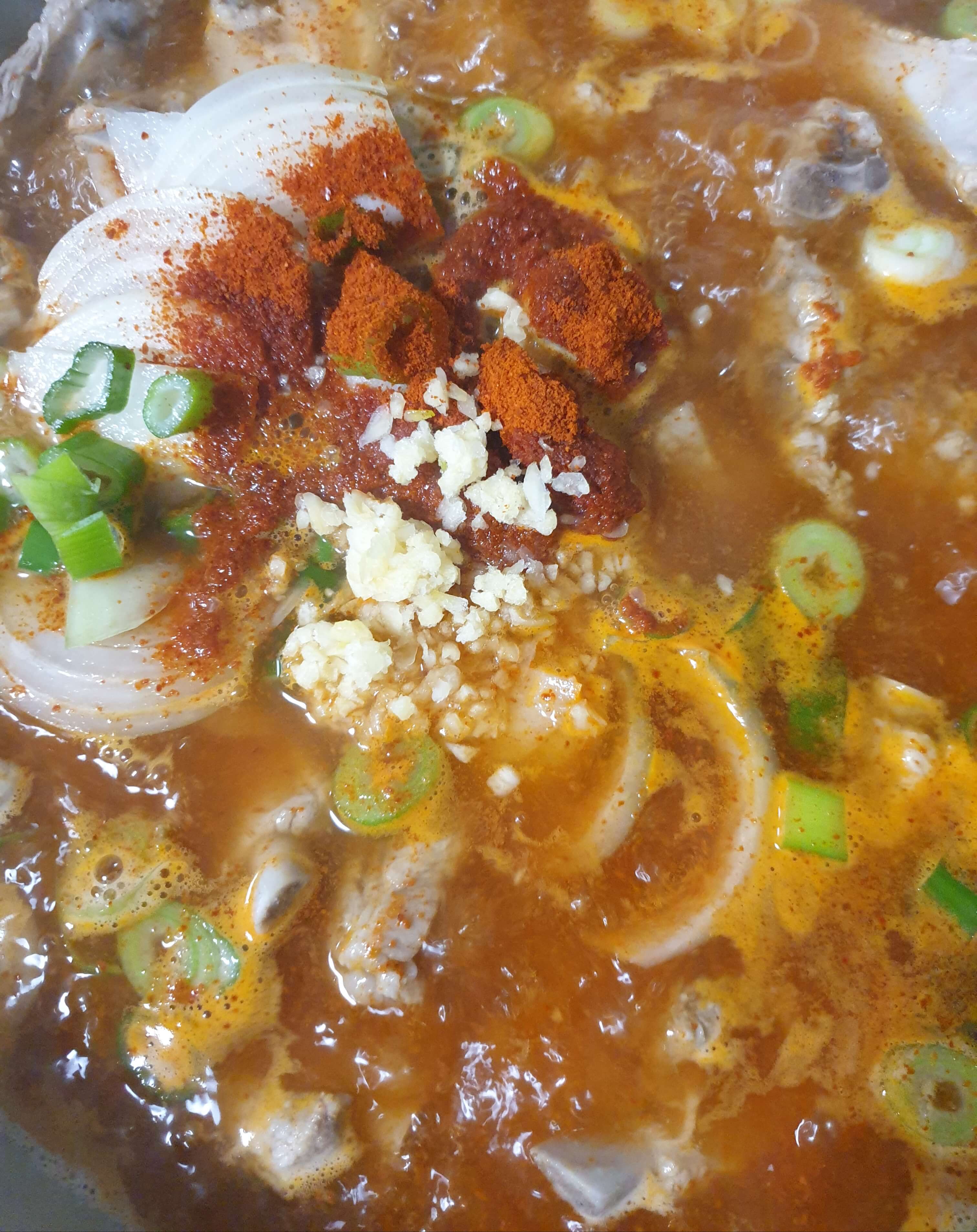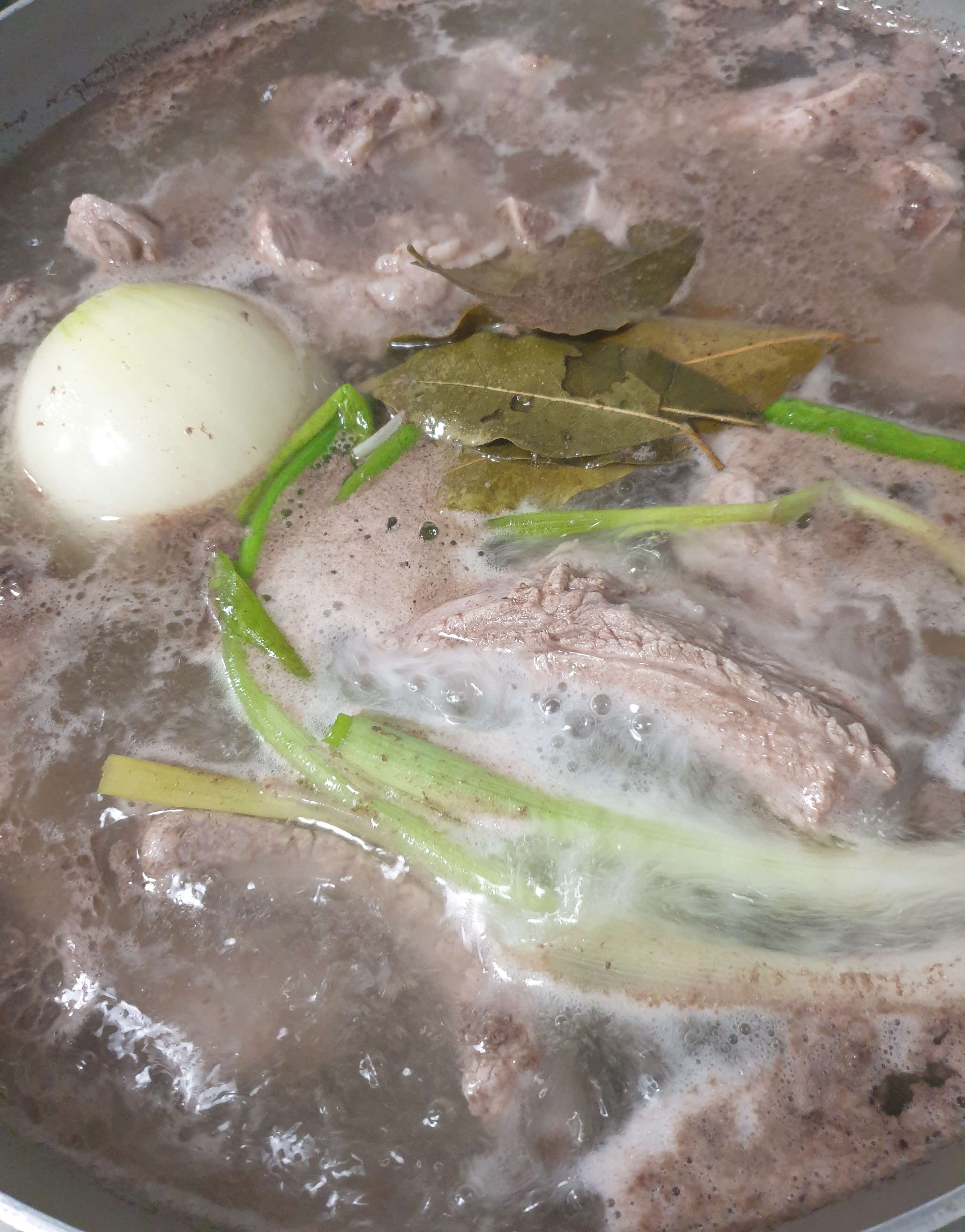 등갈비와 대파, 양파, 월계수 잎 등을 넣고