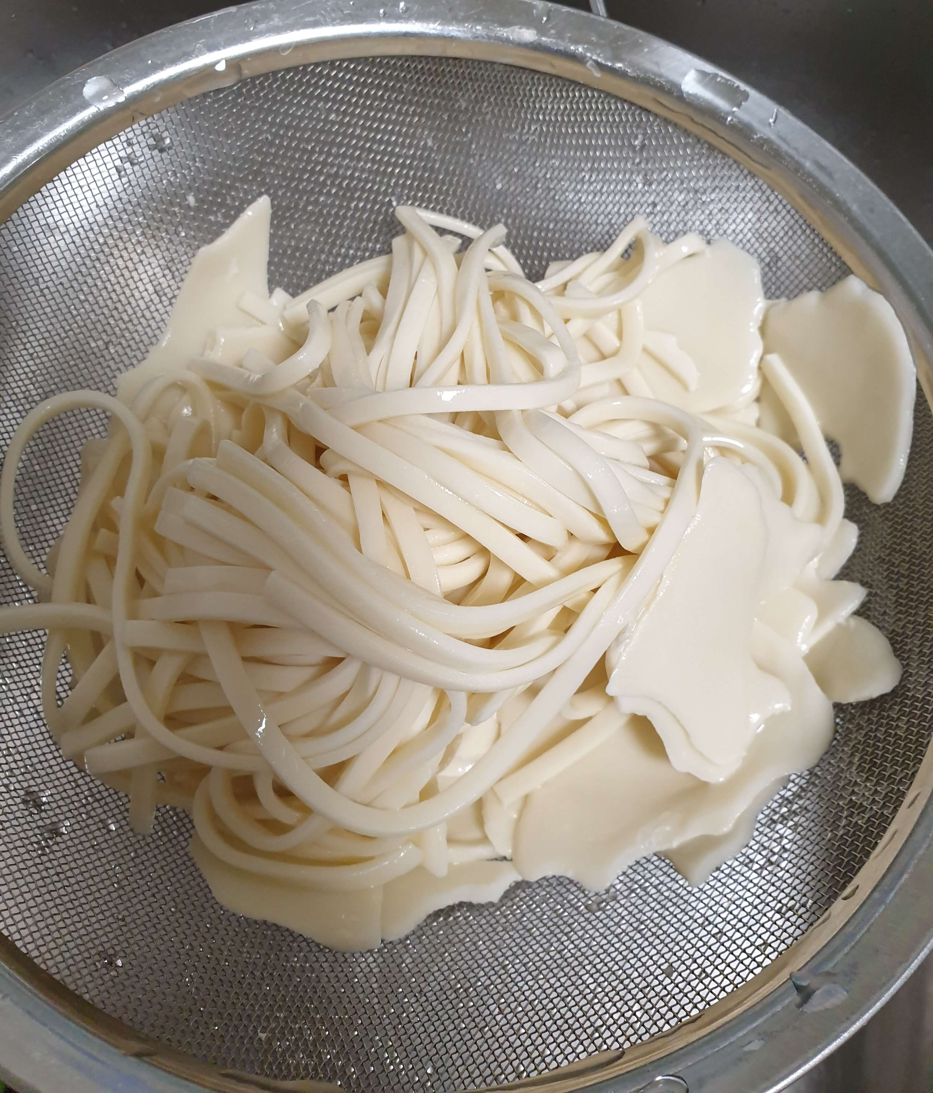칼국수랑 수제비는 밀가루를 씻어 냈어요.