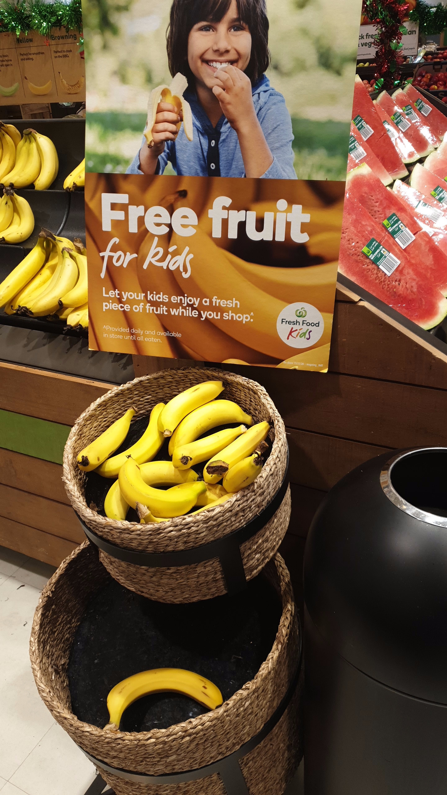 그리고 울월스, 콜스에 가면 이렇게 아이들을 위한 무료 과일이 있어요