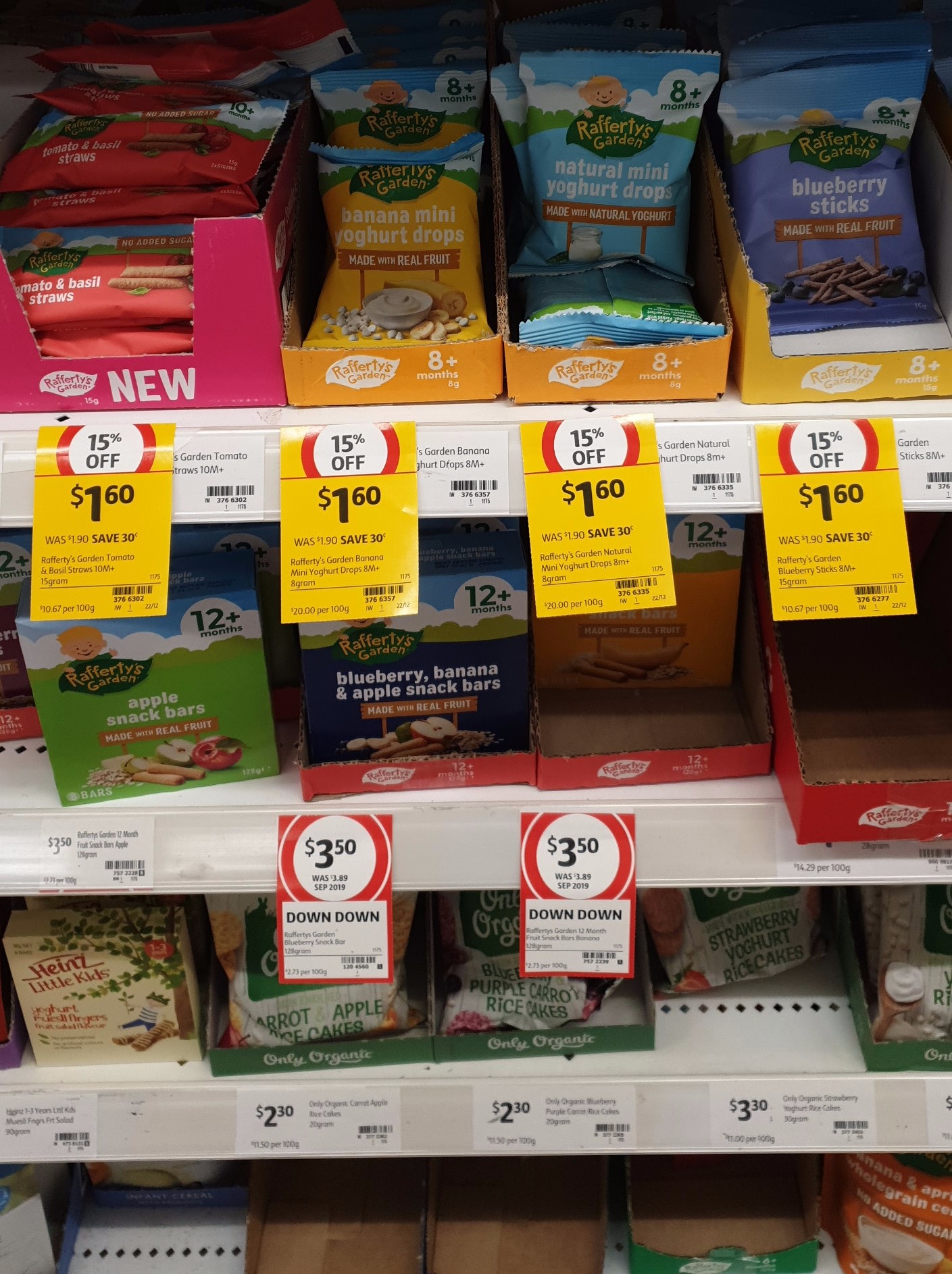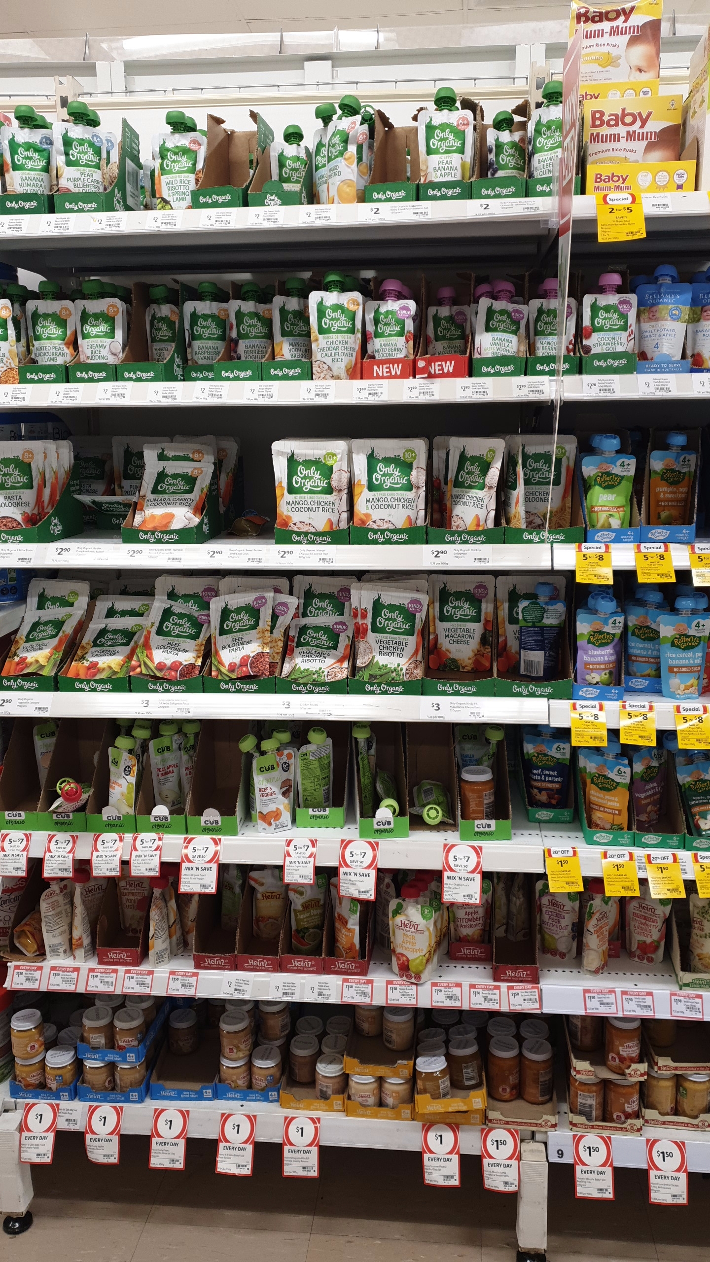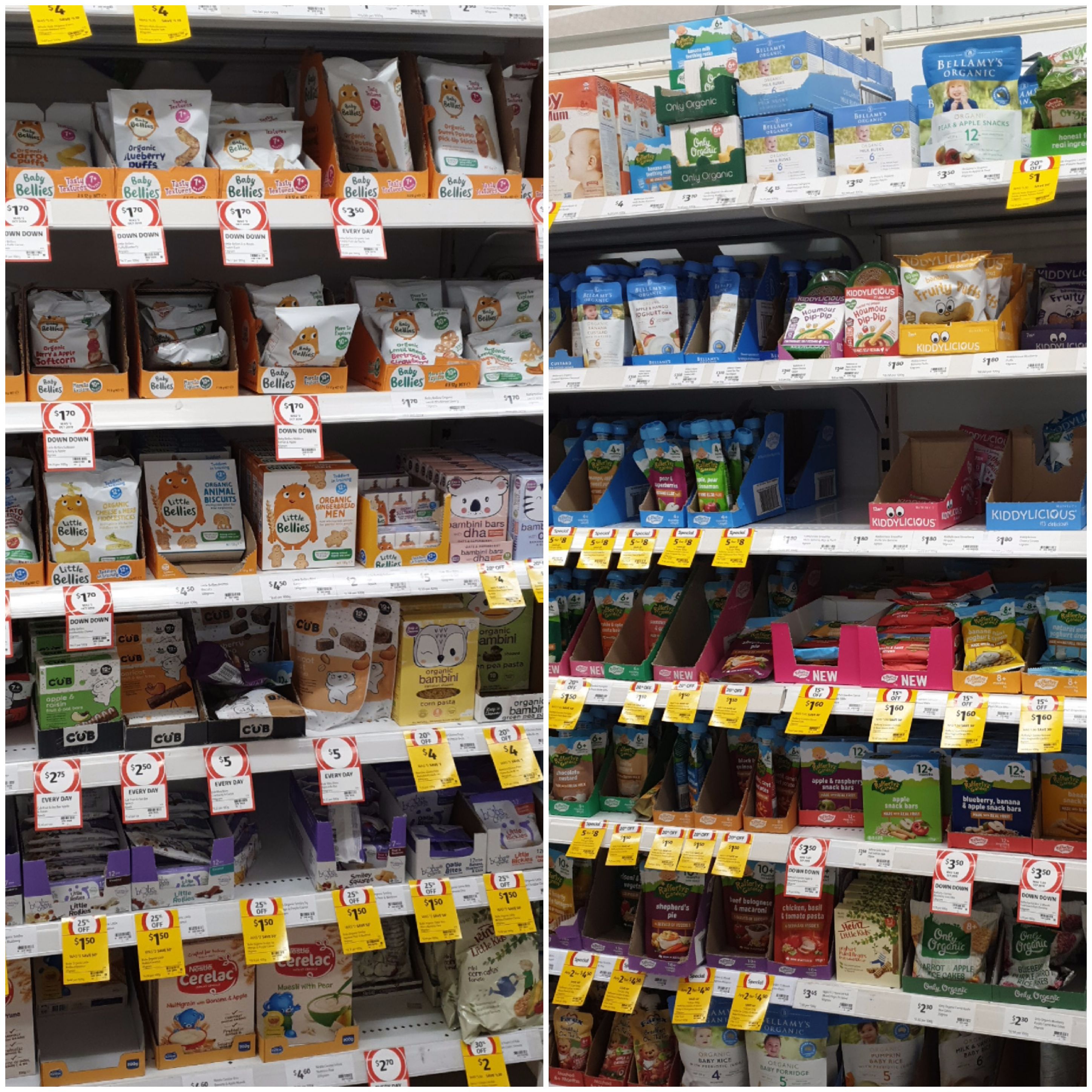 호주 대형마트인 울월스나 콜스에 가면 아기 간식 코너를 만날 수 있는대요