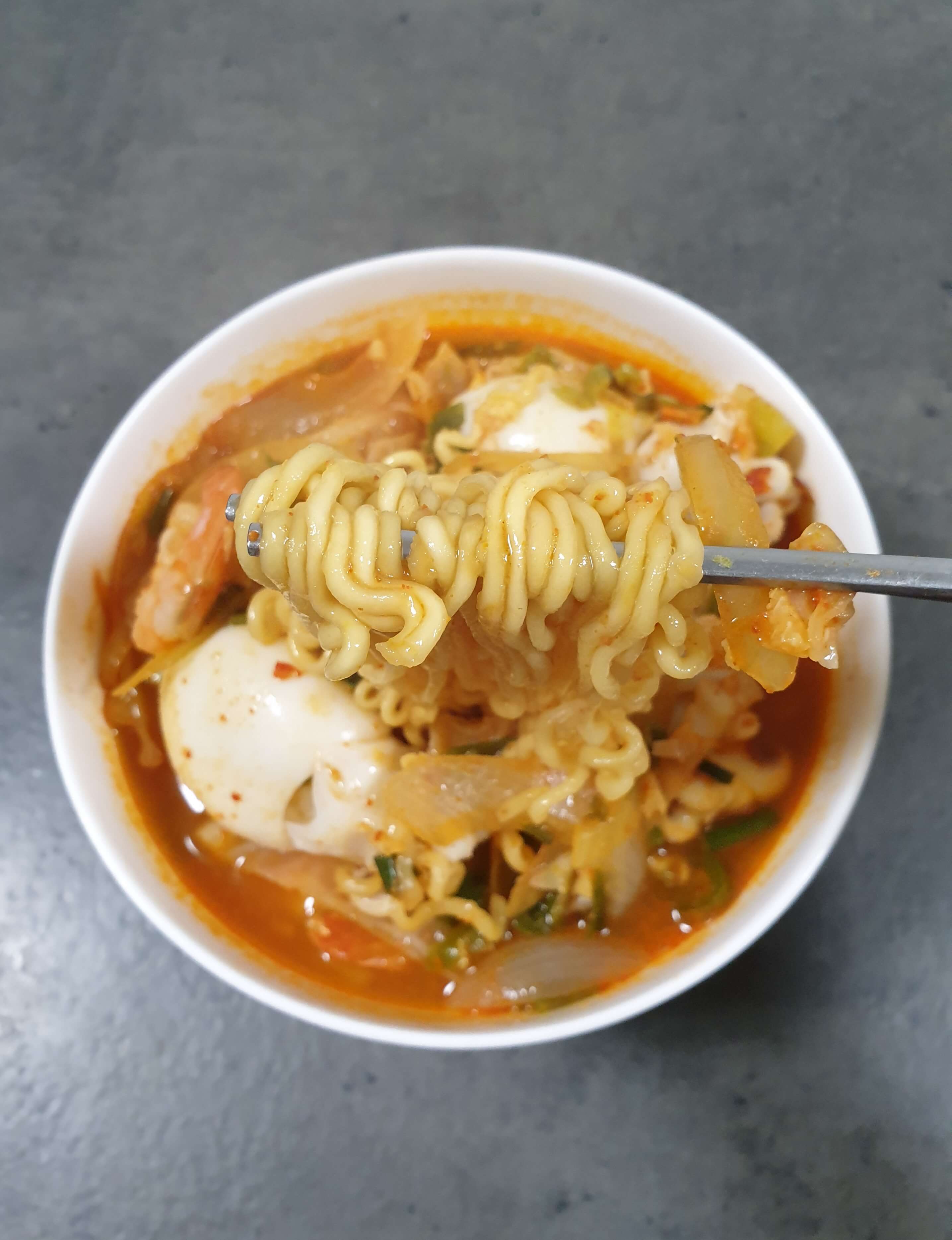 저 만을 위한 갑오징어 라면을 끓여 보았어요.