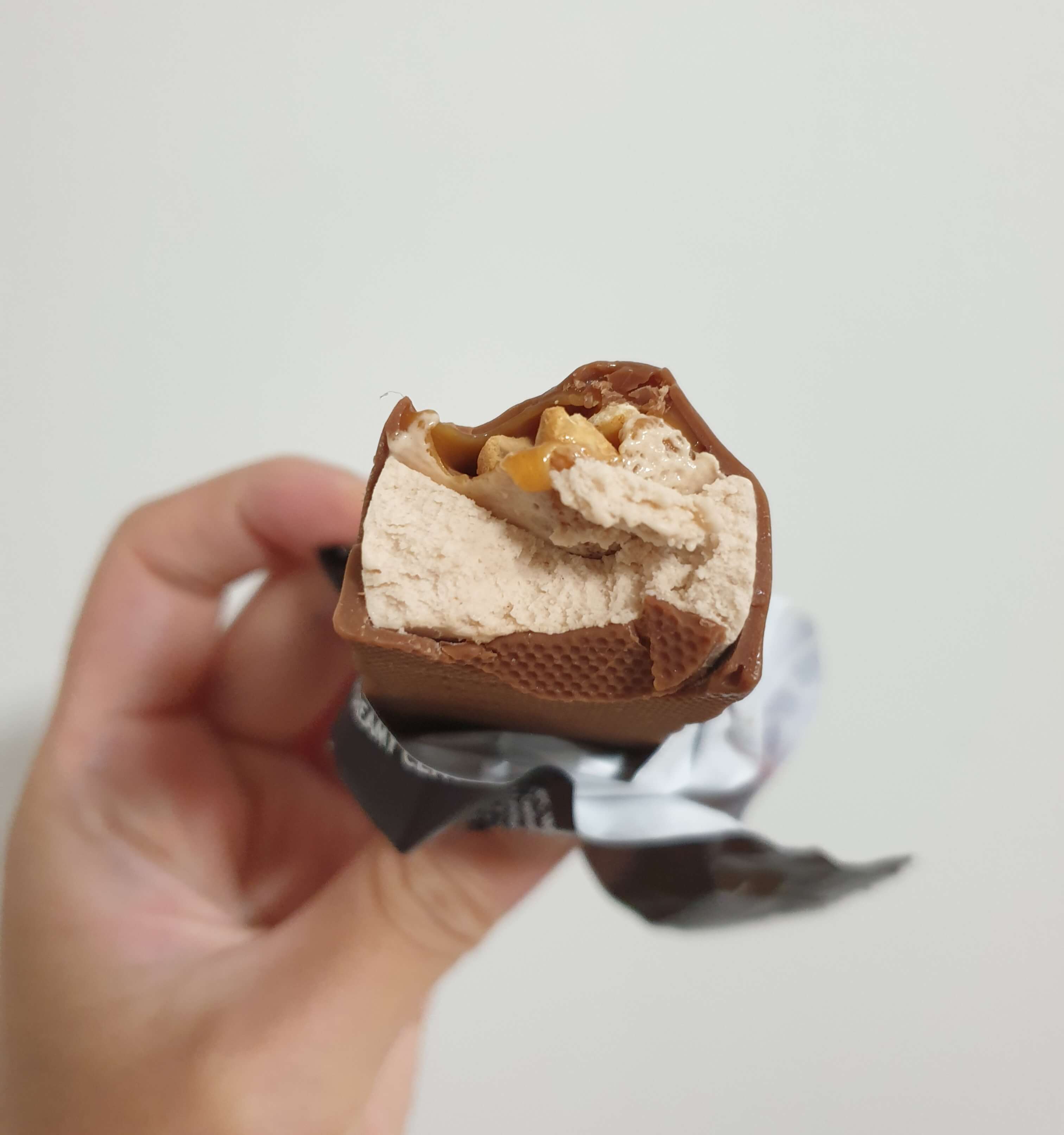 초코 코팅이랑 캐러멜이 달아서 아이스크림 부분이 적당히 달달한 게 딱 조화가 좋은 것 같아요.