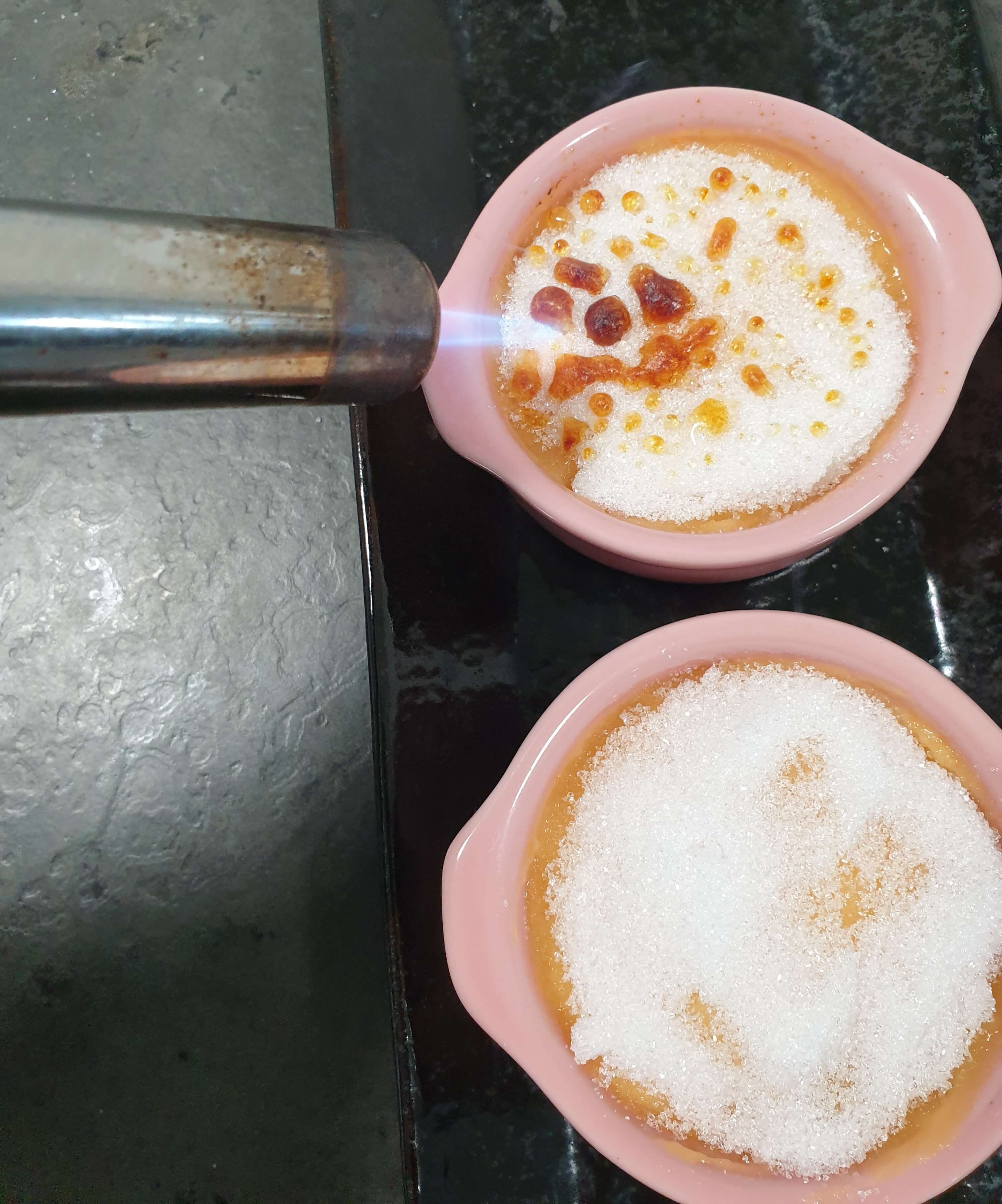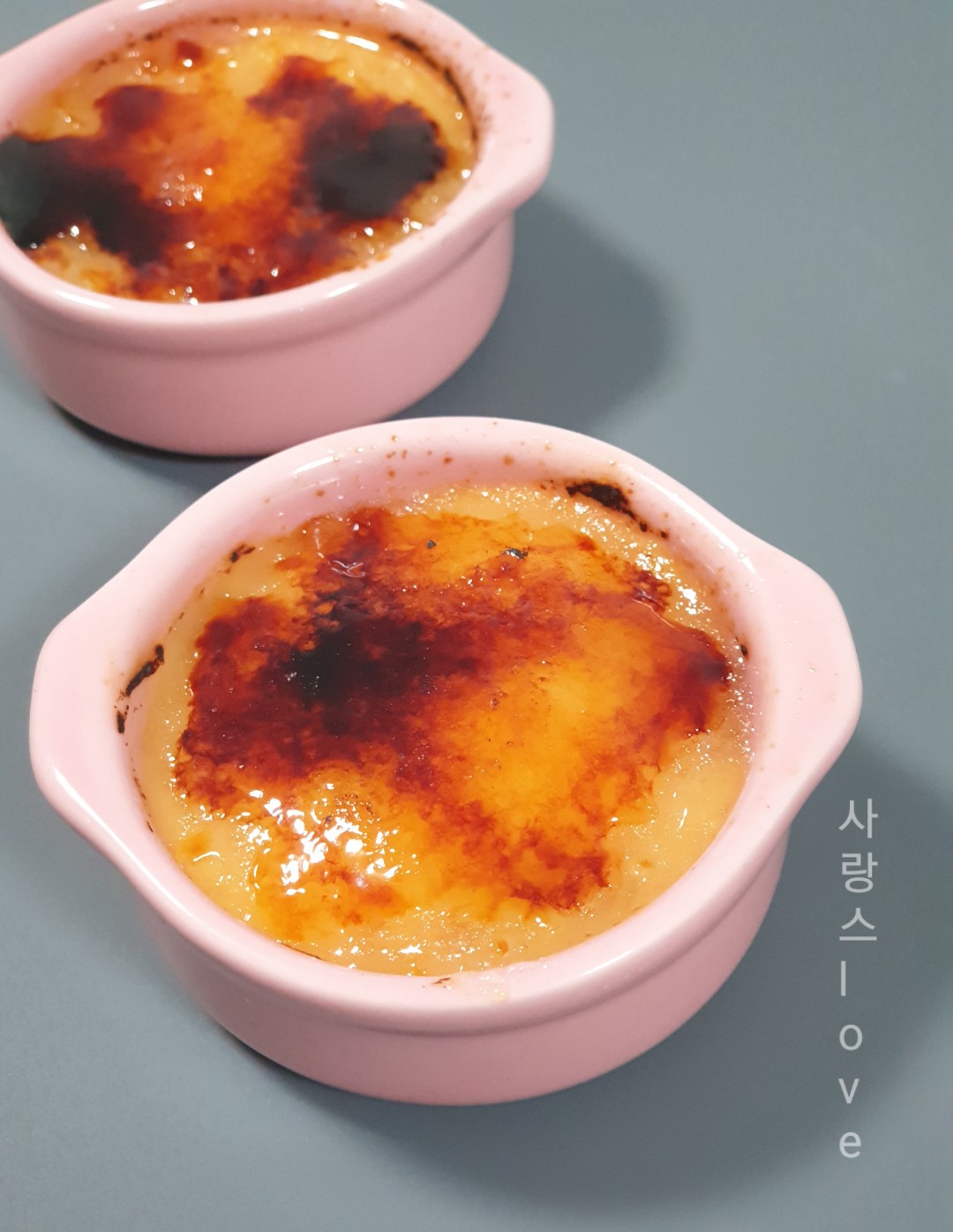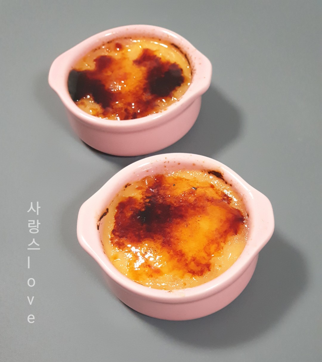 뒤에 있는 크림 브륄레가 더 많이 그을려서