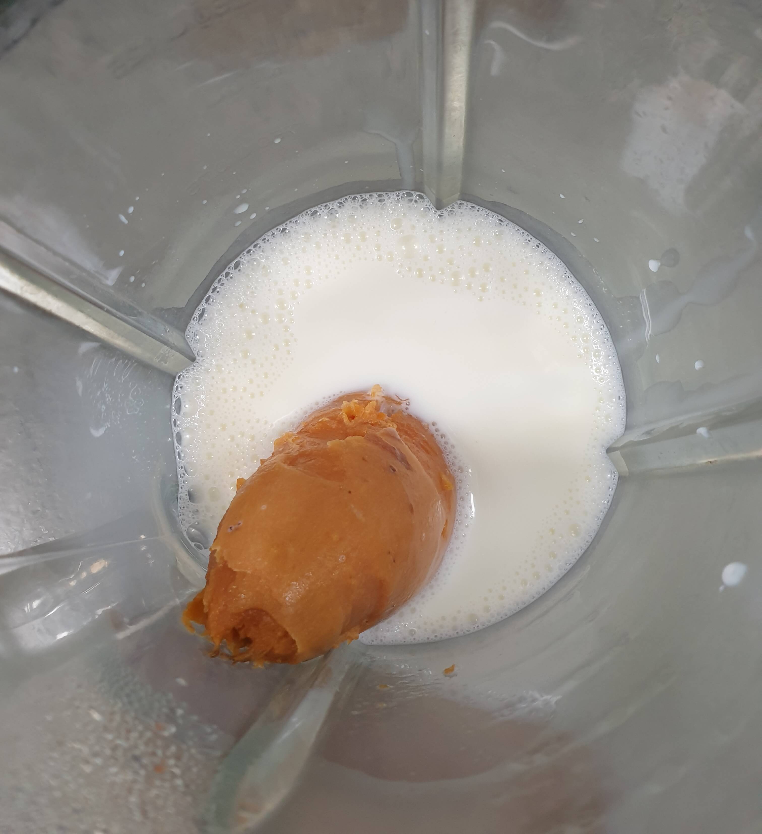 갈아 놓은 고구마+우유를 넣고