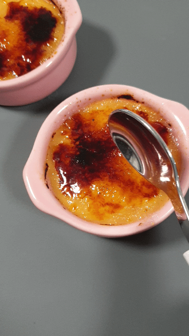 간식으로 크림 브륄레까지 만들었습니다.