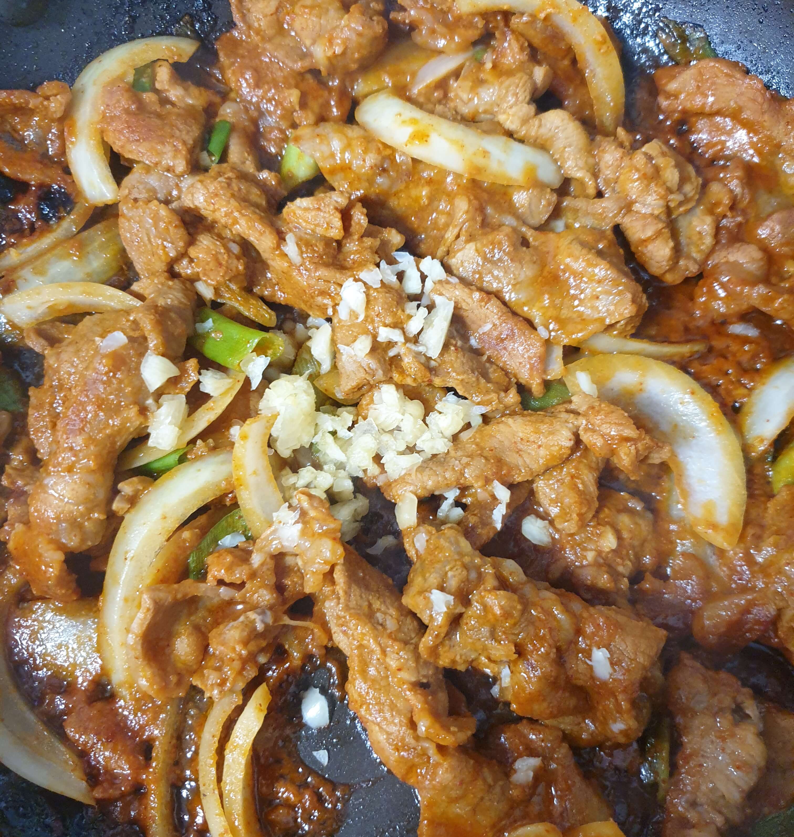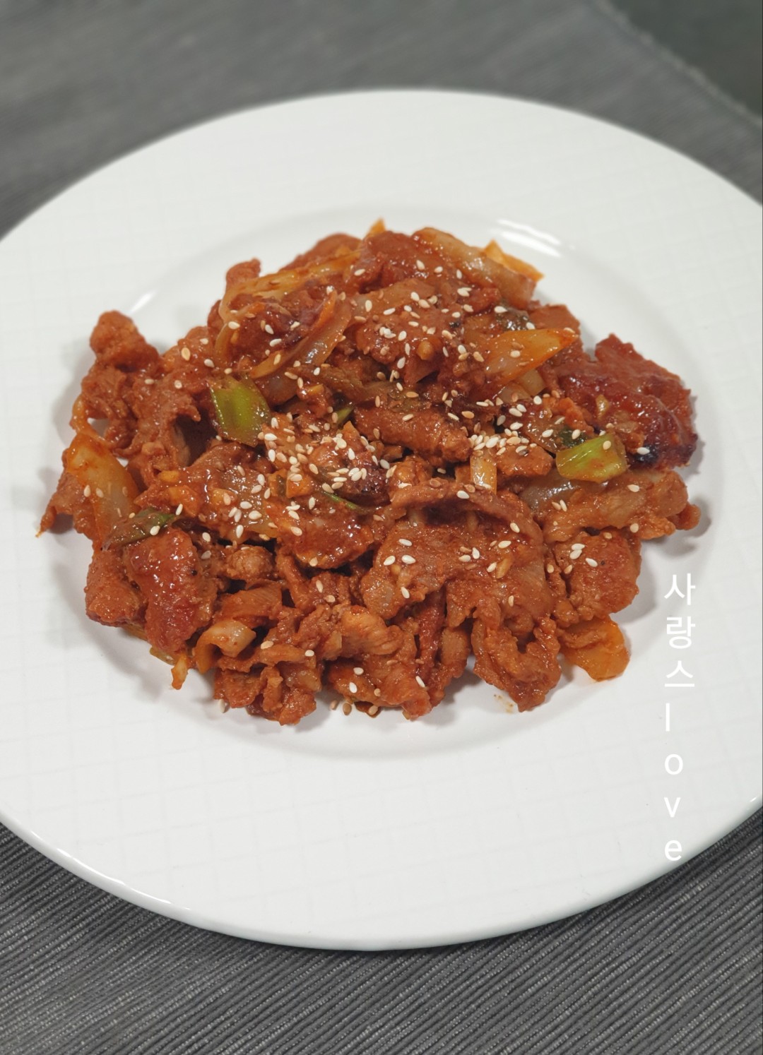 오늘의 요리 오늘은 뚝딱이 형 레시피로 국물이 자작한 국물 제육볶음을 만들었어요. 저는 보통 불 맛 나는 제육볶음을 만들어 먹는데 뚝딱이 형이 만든 국물 제육볶음 비주얼을 보니 너무 먹고