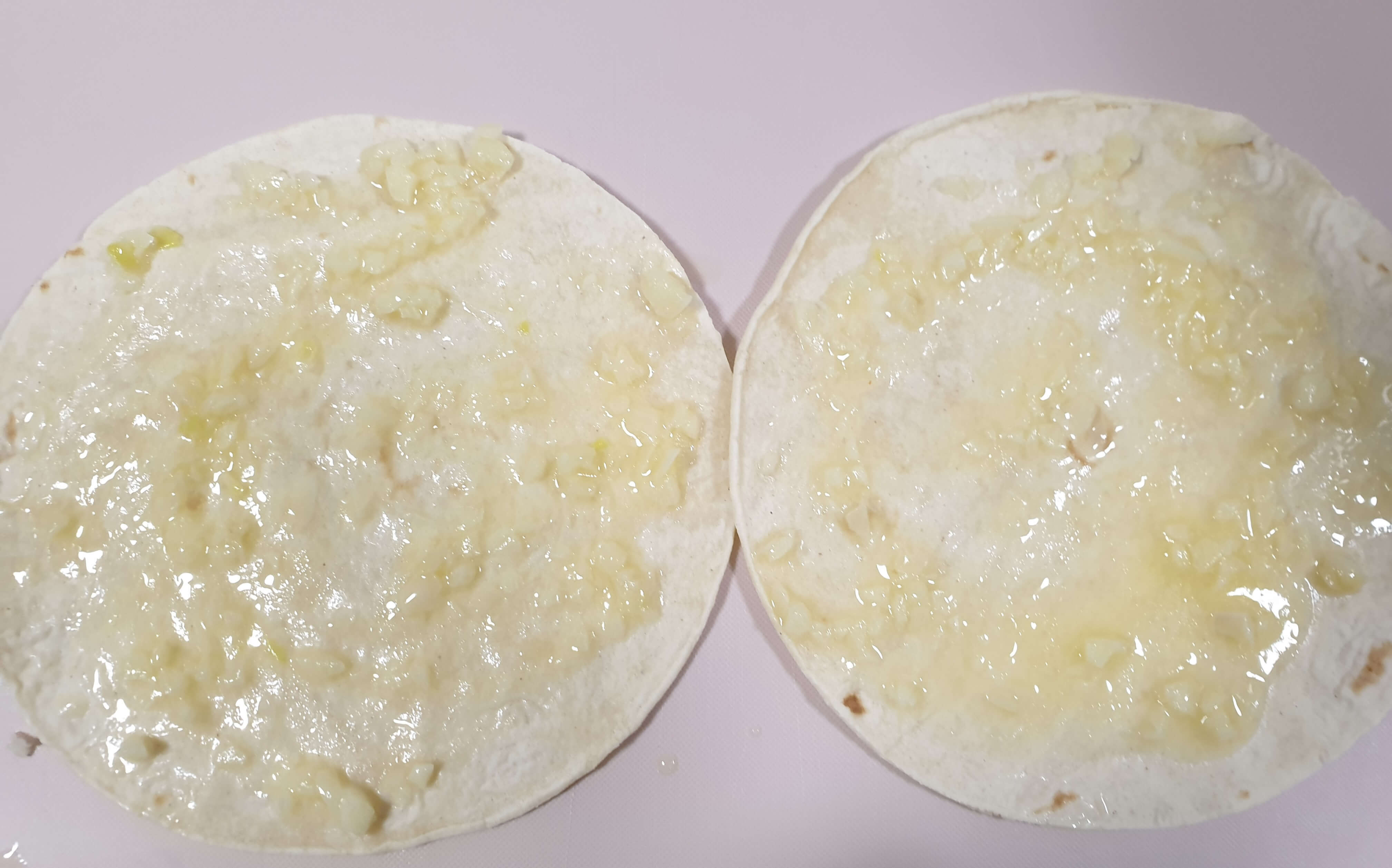 또띠아에 버터 마늘을 펴 발라 주세요.