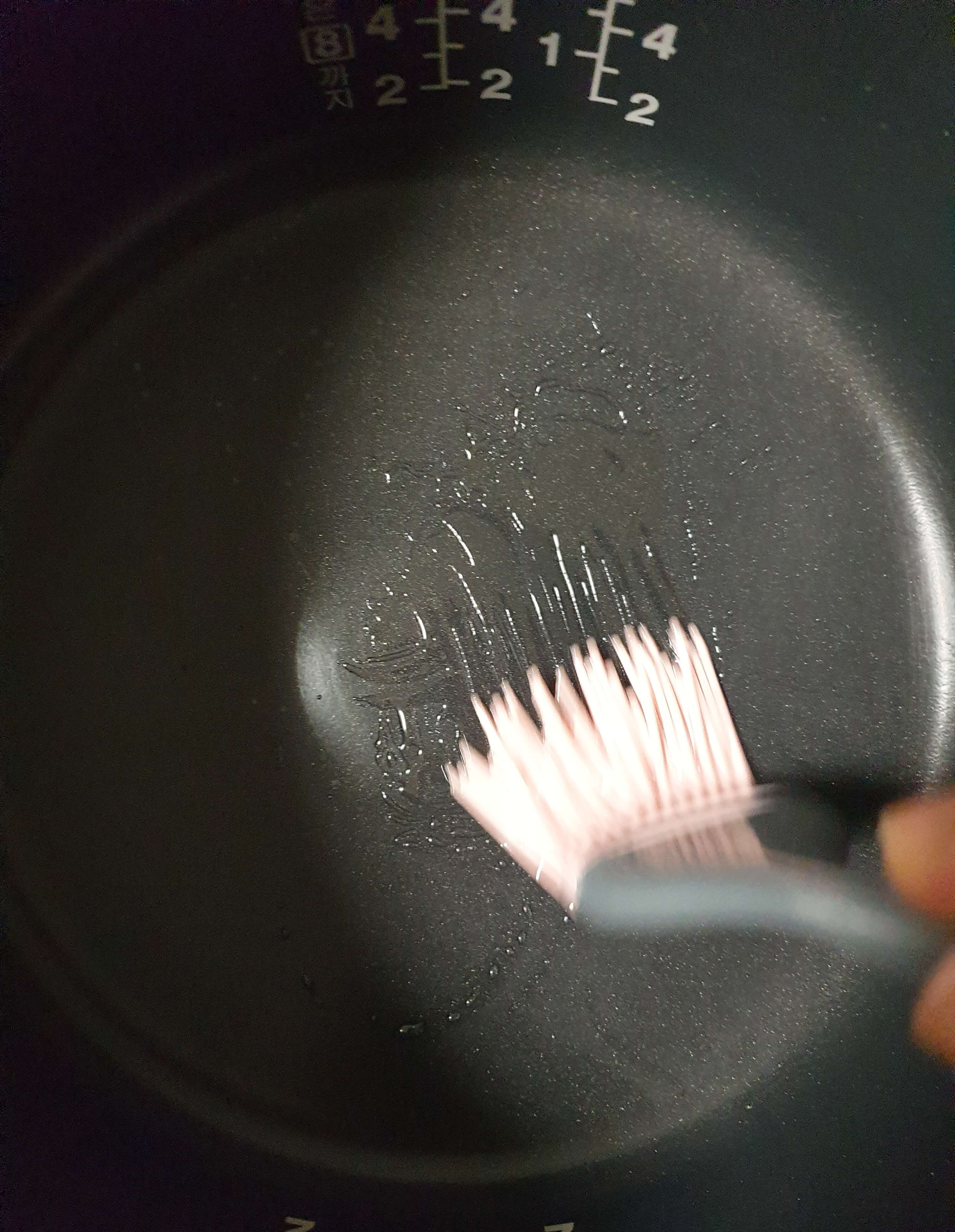 밥솥에 기름을 칠해주고
