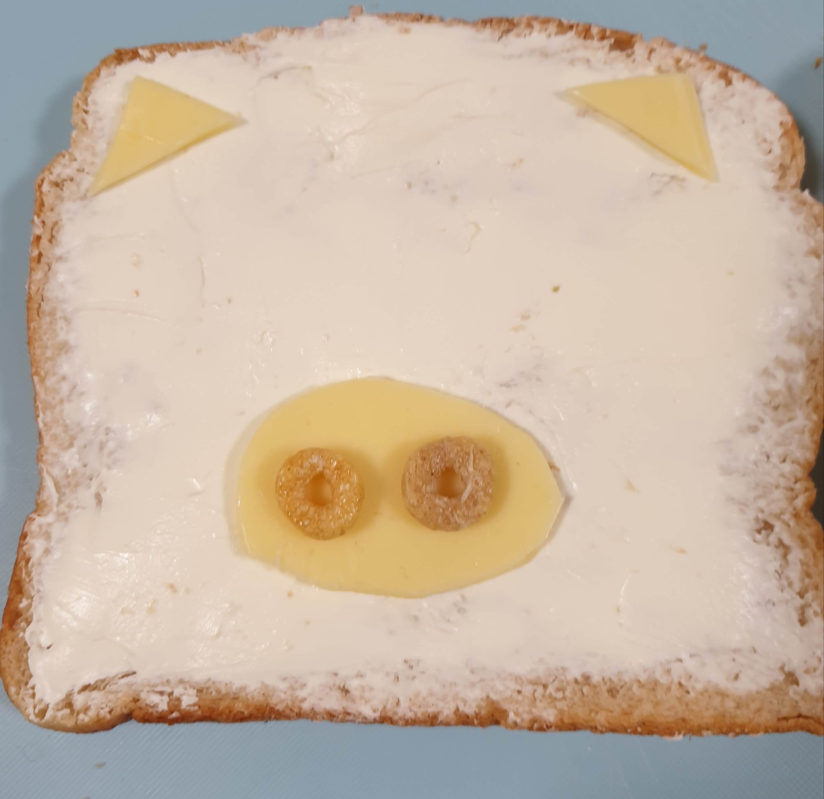 치즈를 잘라 귀와 코를 만들고