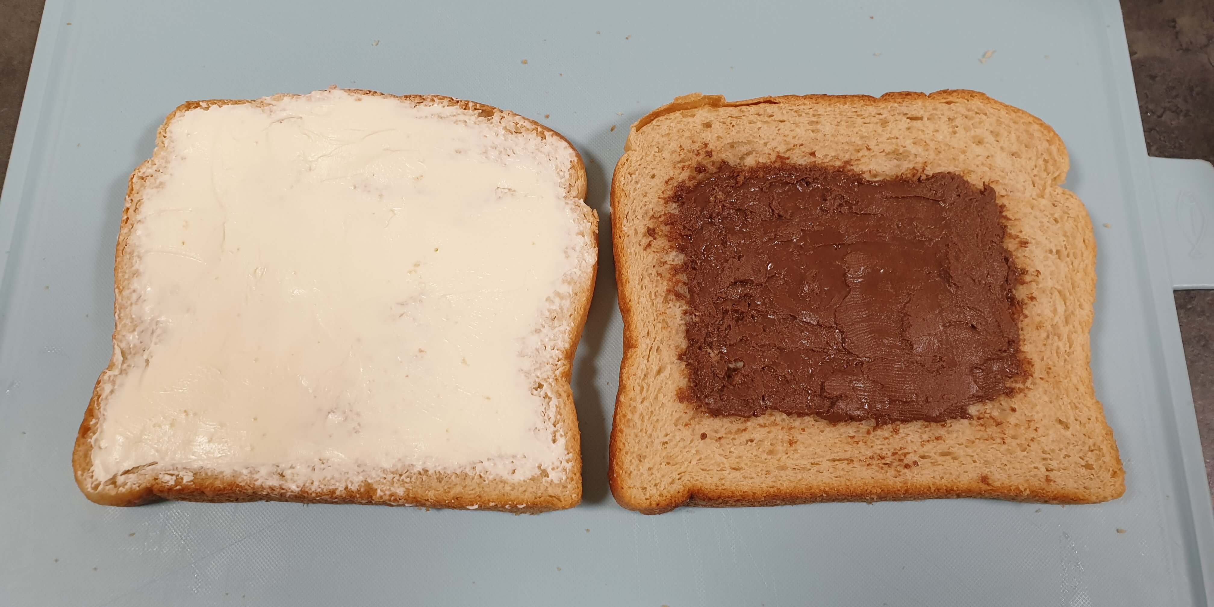 하나는 누텔라를 중간부분만 발랐어요.