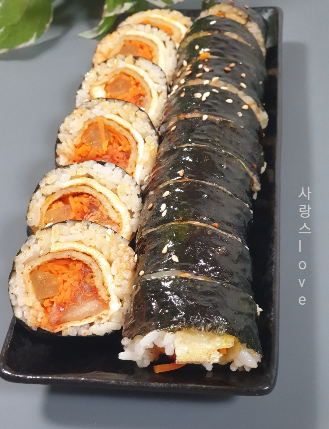 오늘의 요리 이제 냉장고에 얼마 남지 않은 김치를 사용하기 위해 묵은지 참치 김밥을 만들어 보았어요. 냉장고에 재료들이 줄어드는 듯하면서도 여전히 뭐가 참 많네요.😅 묵은지 말이 김밥