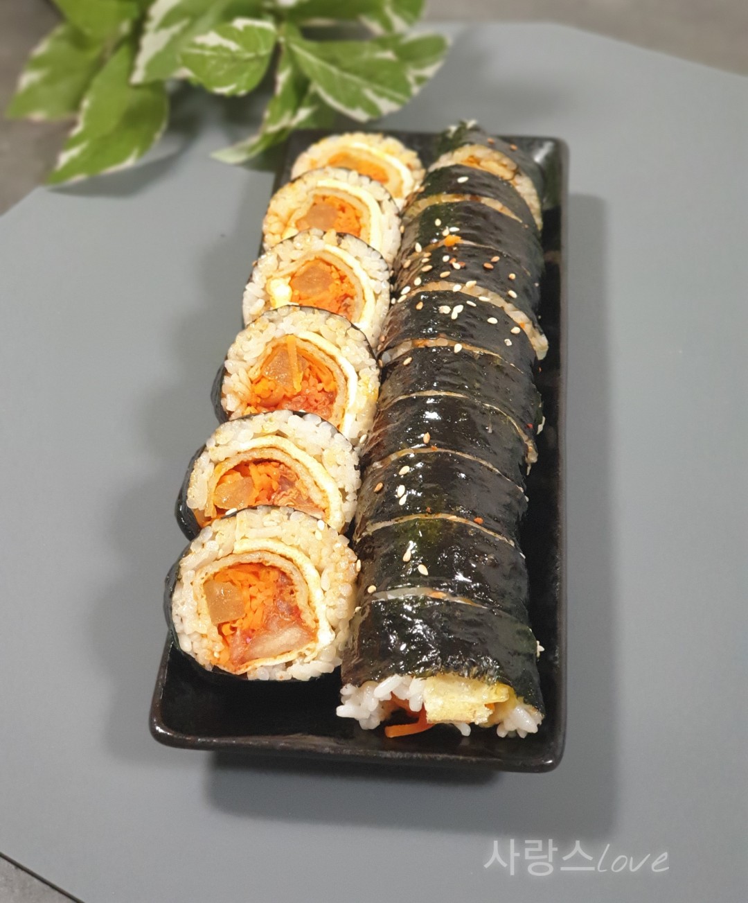오늘의 요리 유튜브를 보는데 쁘걸에 유정님이랑 은지 님이 은지 님 친오빠 가져다준다고 구절판 김밥을 싸다가 망해 버렸어요 그래서 일반 김밥으로 급 변경했다는 ㅎㅎ 그걸 보고 괜히 구절