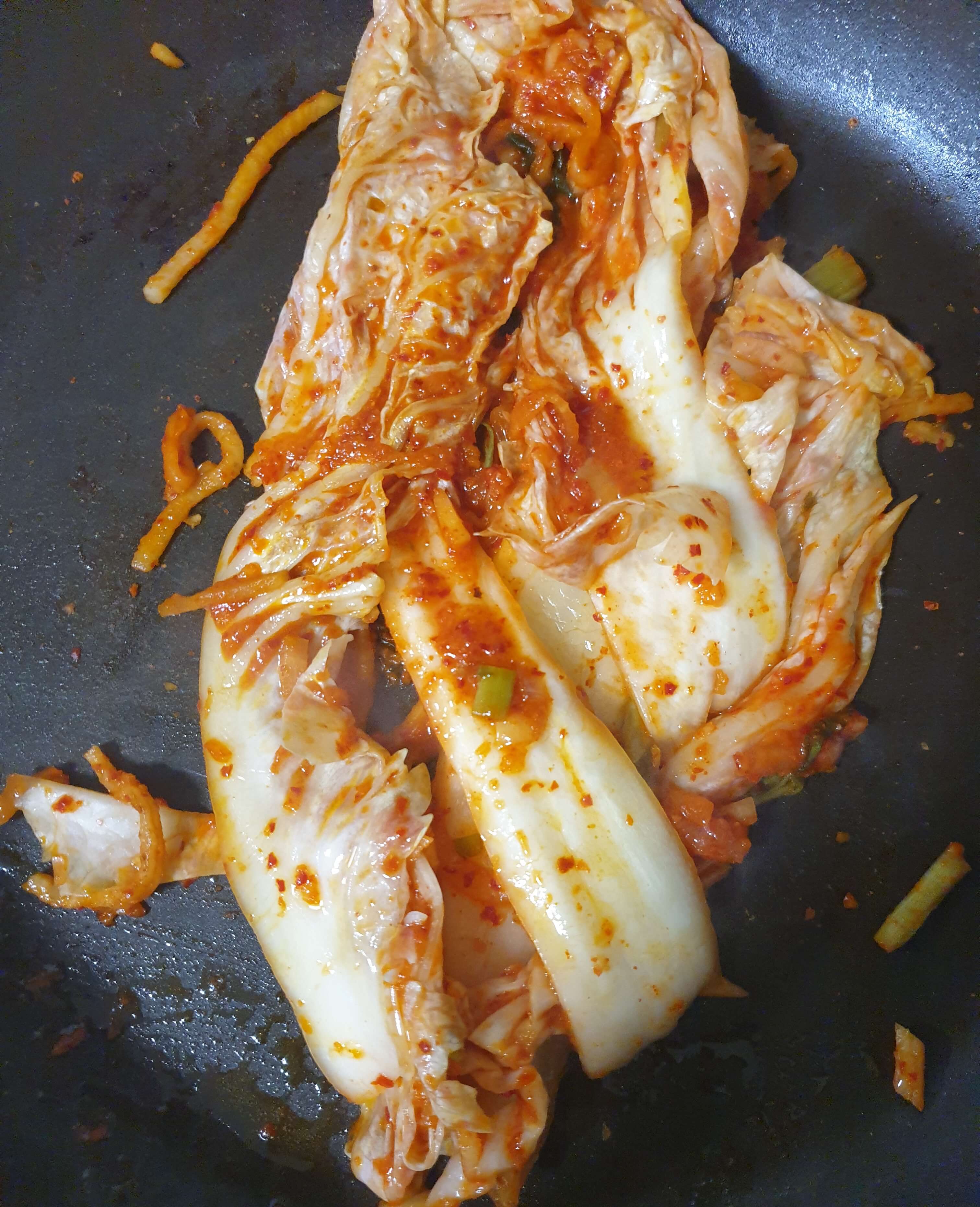 볶은 김치는 작게 자르지 않고 모양 그대로