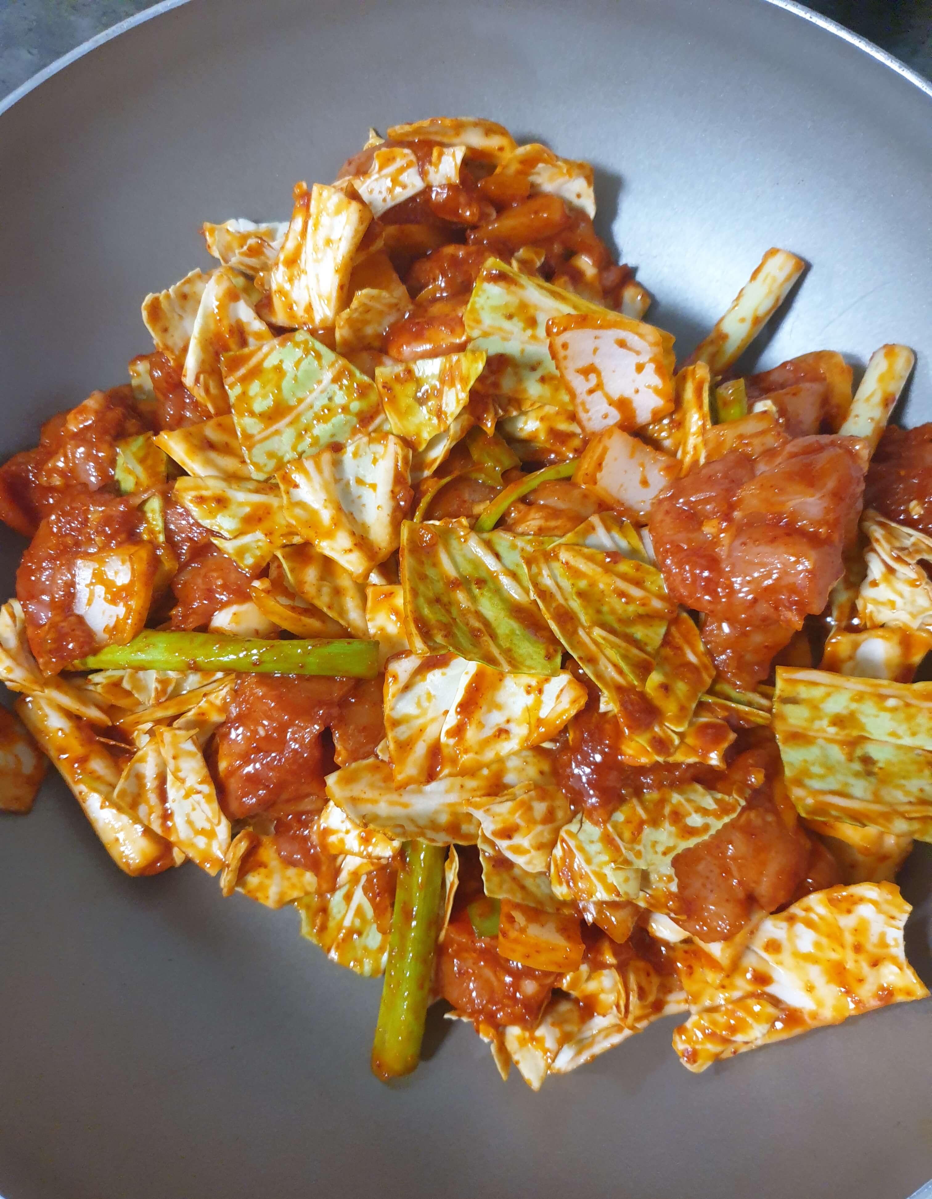 이렇게 반반 닭갈비를 만들었습니다. :)