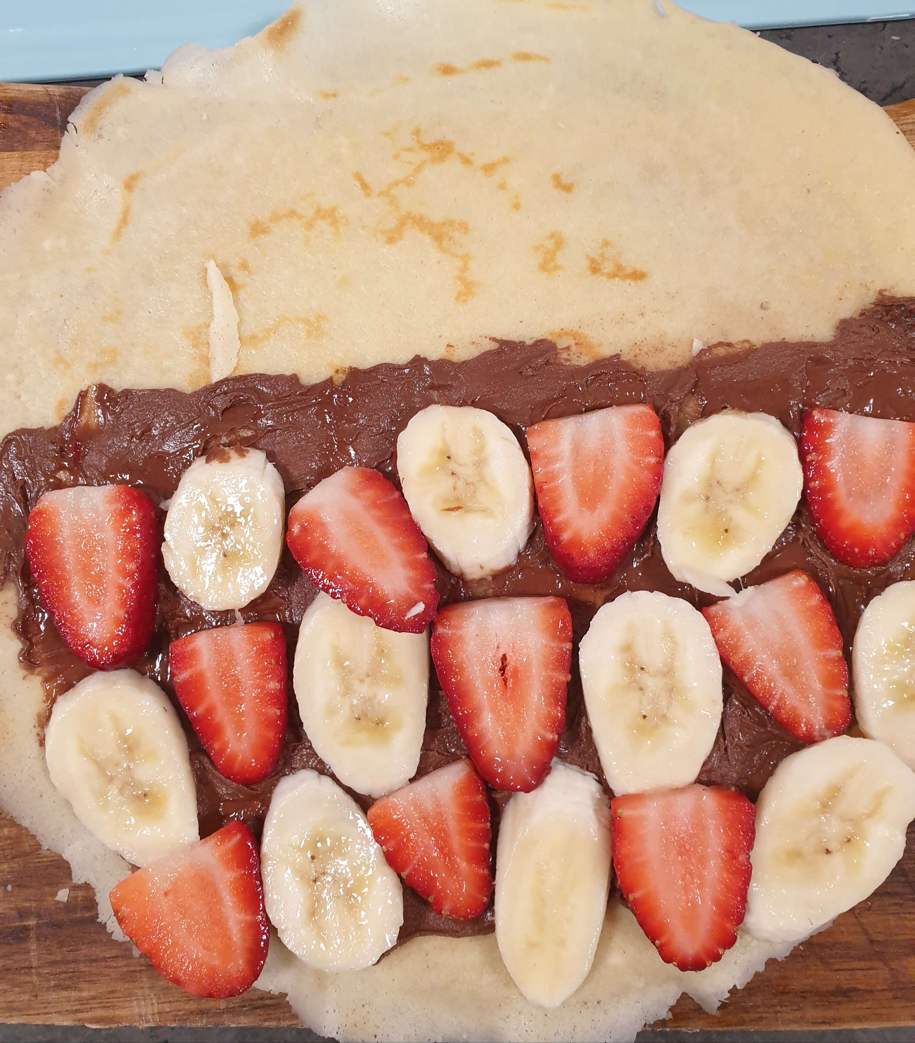 바나나 1개와 딸기를 썰어서 준비했어요.