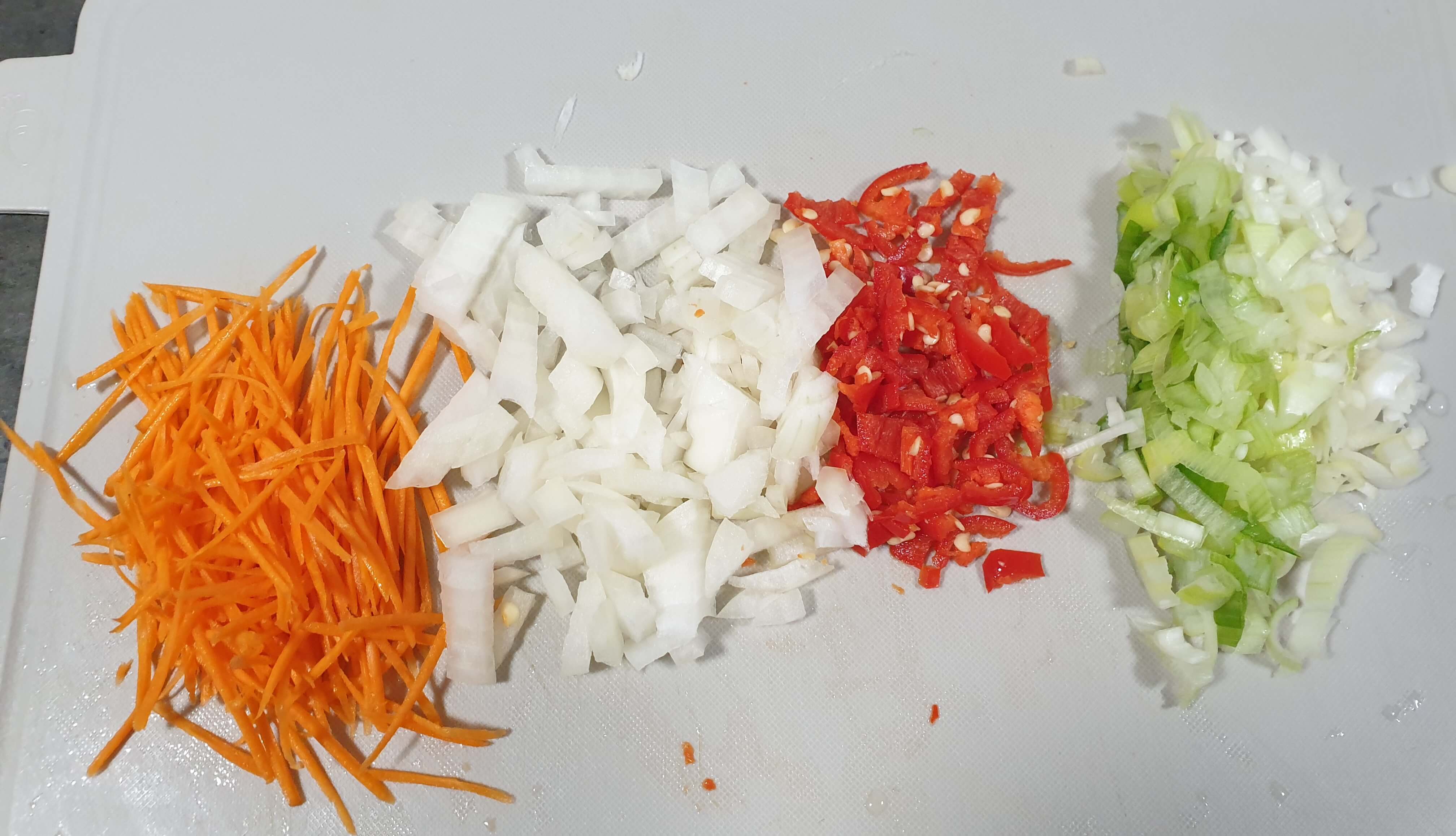 썰어 놓은 야채들을 그릇에 담고