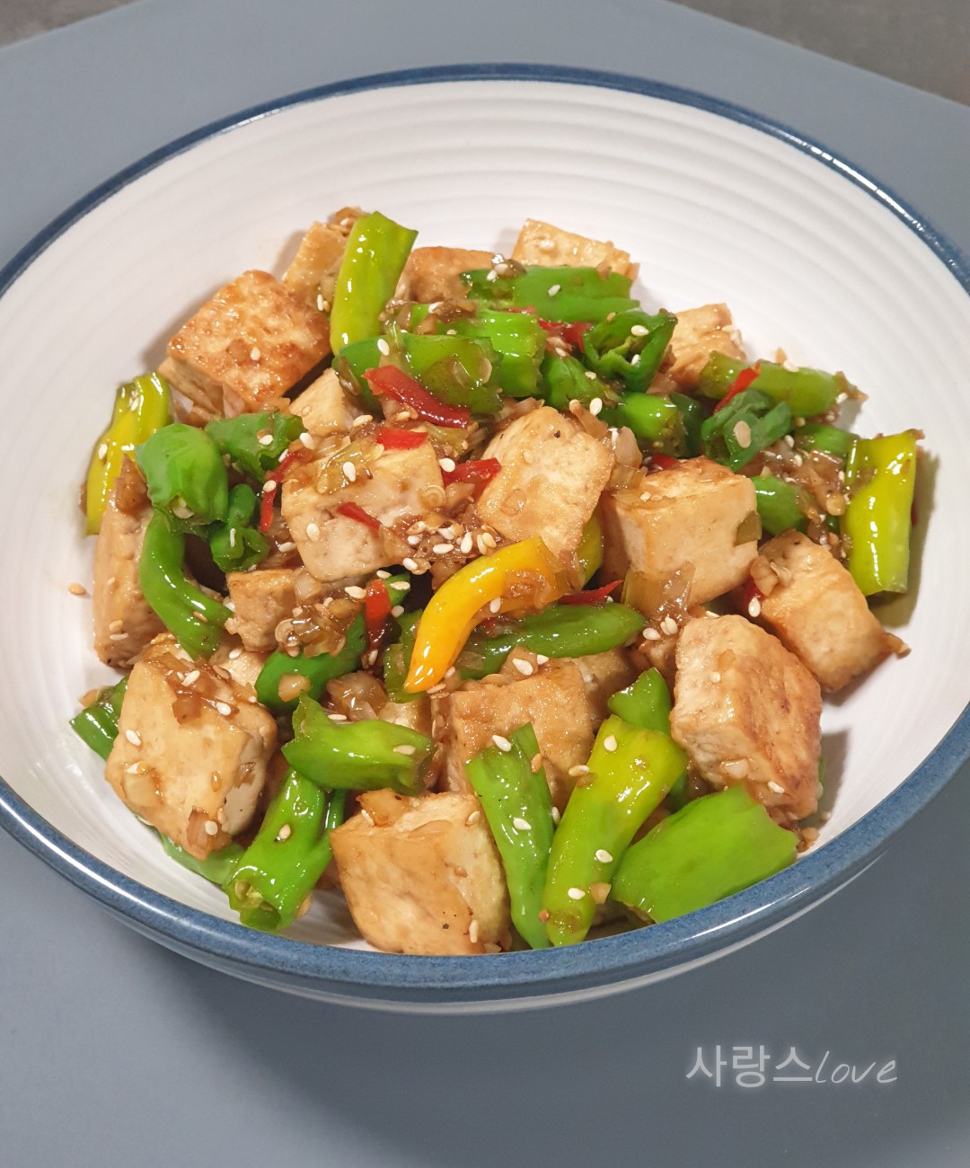 두부 꽈리고추 볶음이에요.
