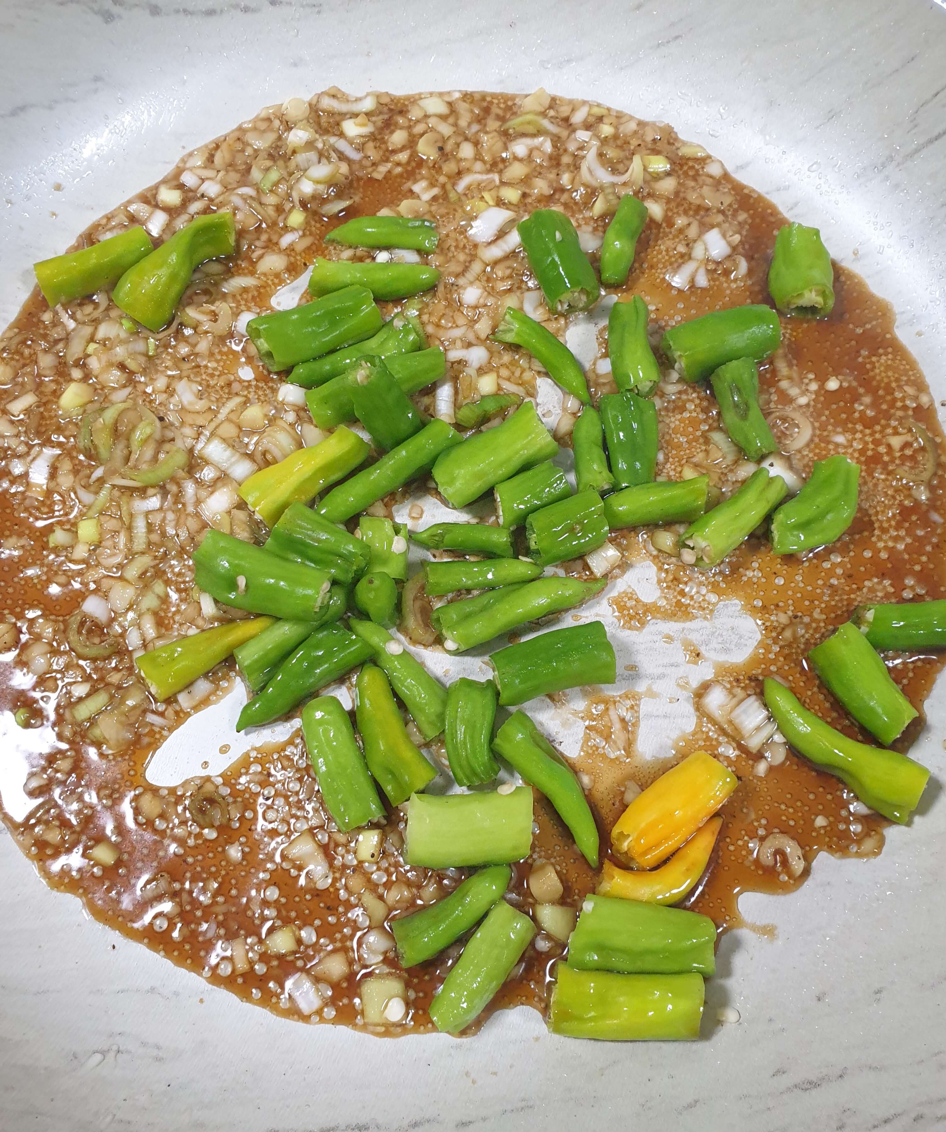 잘라 놓은 꽈리고추를 넣고 볶아 줍니다.