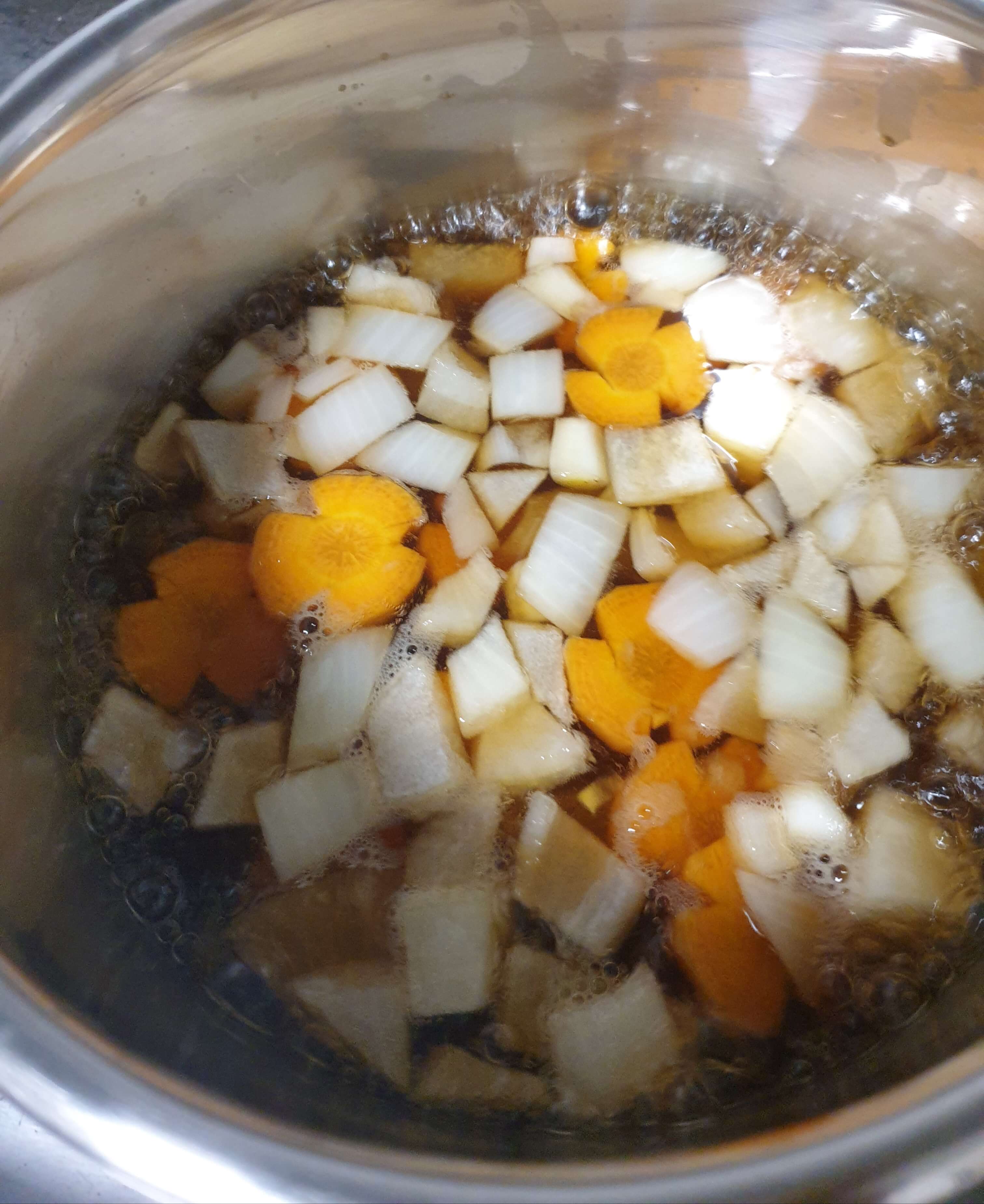 썰어놓은 양파, 당근, 파인애플을 넣고