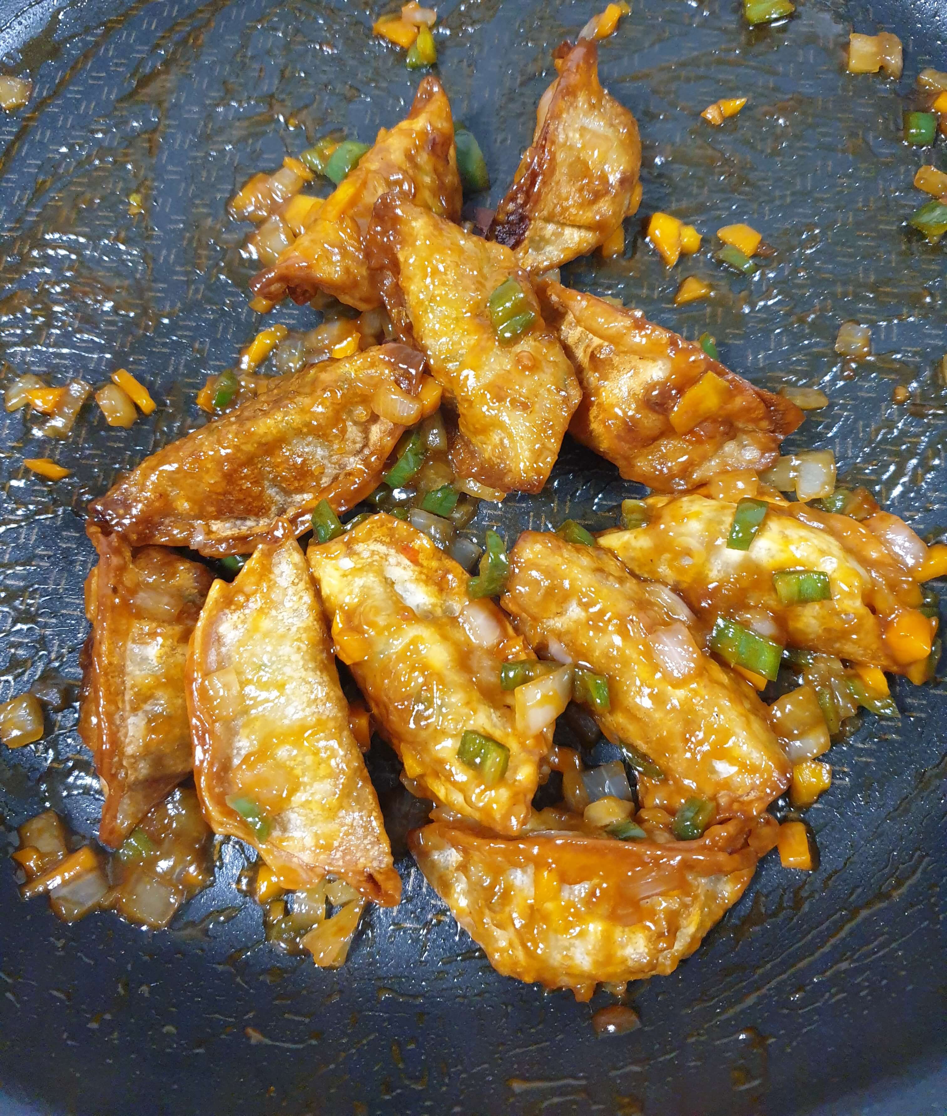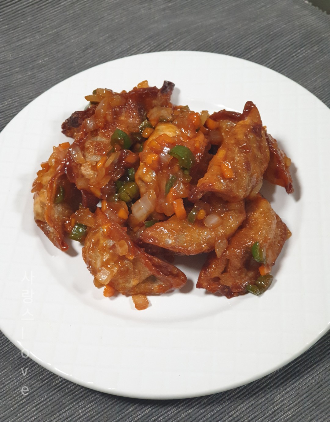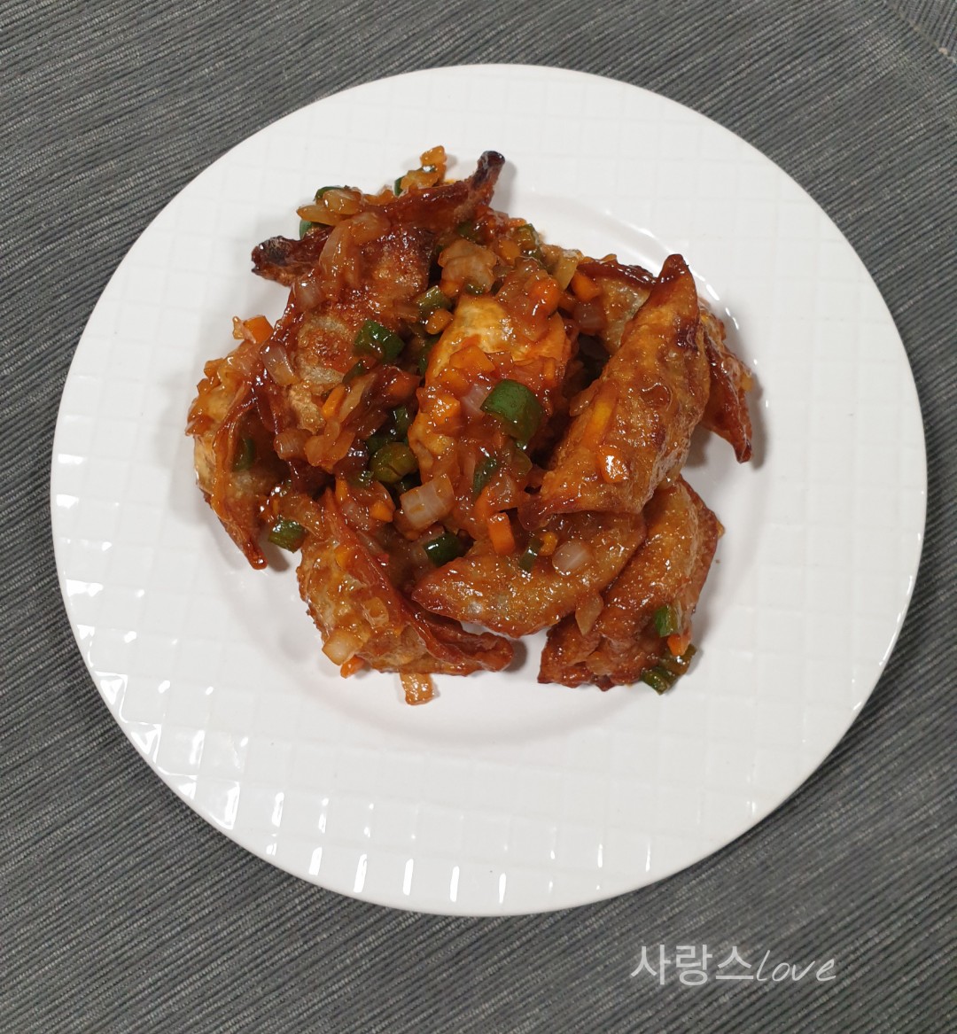 사천탕수 만두가 완성됐어요.